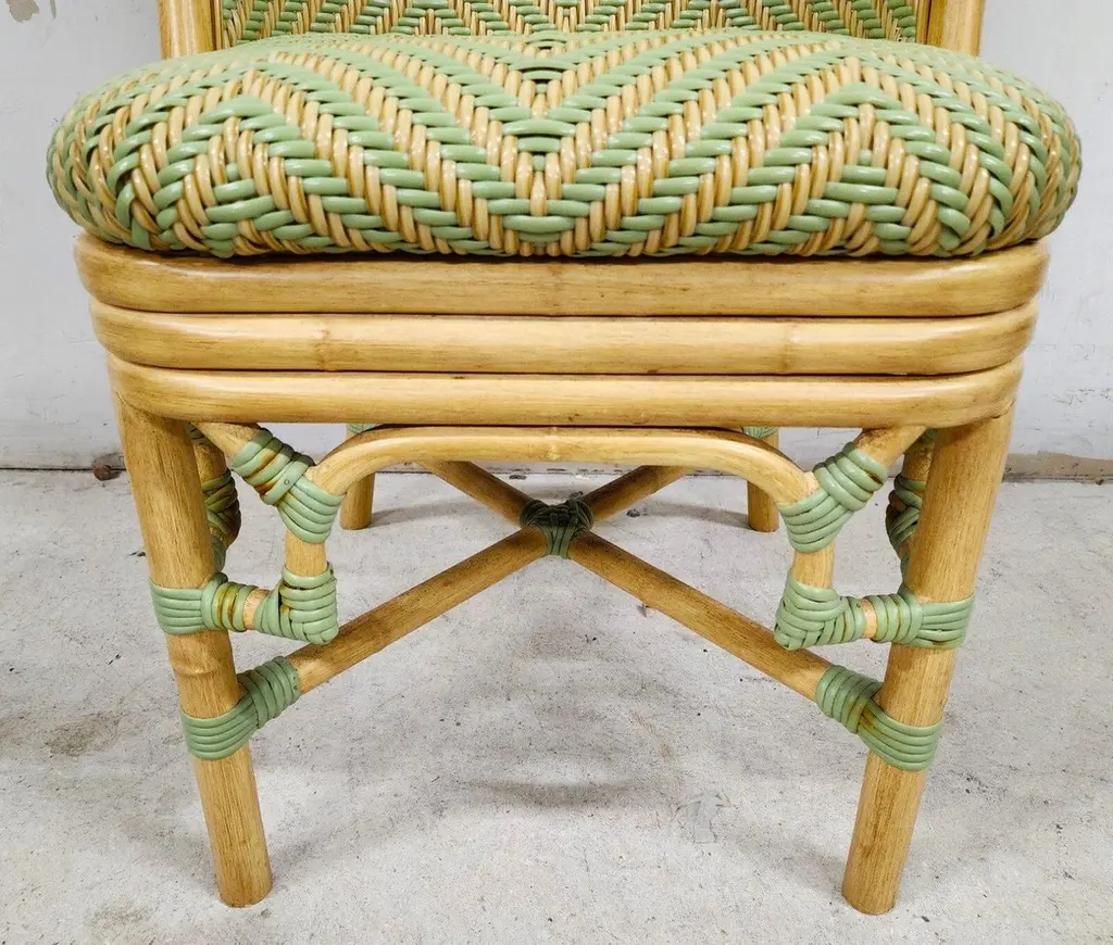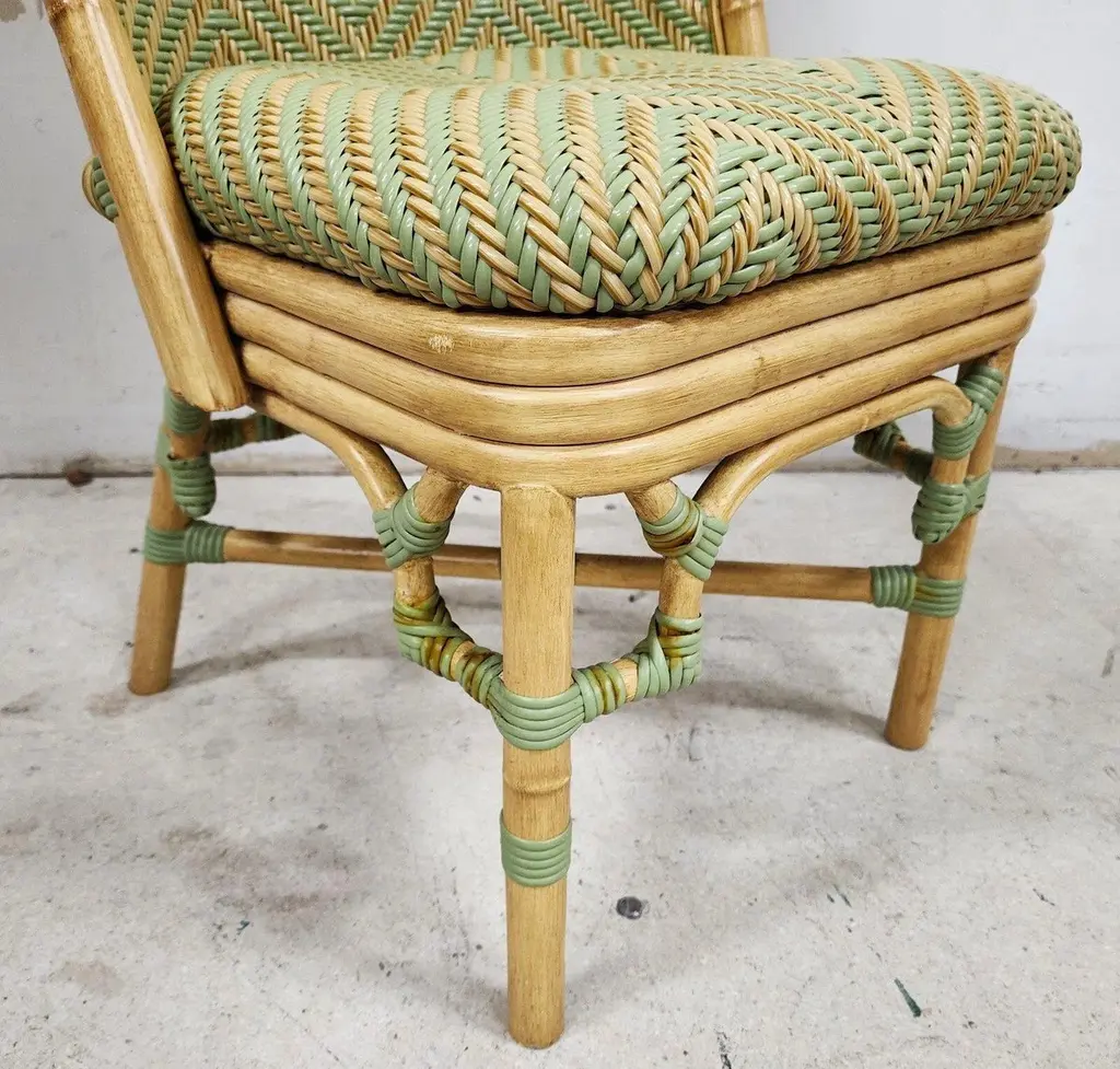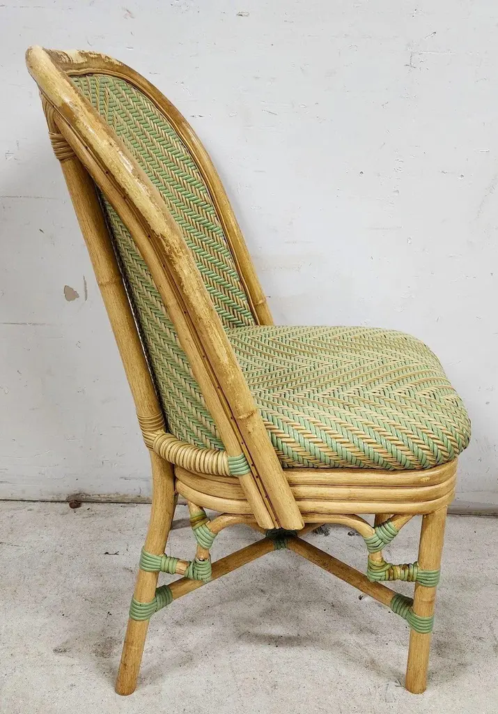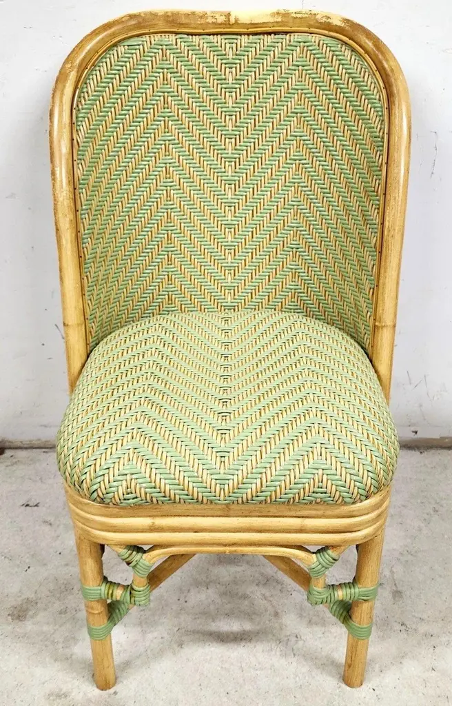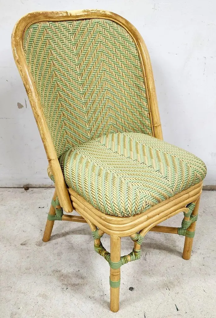 For FULL item description click on More Details below.Shipping Quote InformationThe shipping quote stated in the listing was from 1st Dibs and they normally set all the costs and handle all the shipping details. However, if you let us know what 1st Dibs is quoting you and give us your zip code, we can sometimes ship it for less and get it to you faster. For a shipping quote, click on "ASK THE SELLER" under the purchase button and provide your zip code.Offering One Of Our Recent Palm Beach Estate Fine Furniture Acquisitions Of Set of 6 LANE VENTURE FINE FURNITURE PE Rattan Wicker + Faux Bamboo Aluminum Outdoor Dining Chairs We had about 25 available at the time this listing was made.We also have these listed as singles, and in sets of 4, so we can accommodate other multiples if needed.Structure of chairs is made entirely of aluminum which was made to look like bamboo. Woven strapping is a synthetic polyethylene rattan or “PE rattan” which is stain proof and will withstand the outdoor elements without a cover, which means it is perfect for use as outdoor garden furniture.Approximate Measurements in Inches36" high at back19" wide at seat19" high at seat18" deep at seat20" total depth (back to front)ConditionVirtually indestructible chairs. There is no notable damage to the woven strapping. There may be some dings and scratches to the faux bamboo aluminum frames mostly on the legs. They could use a thorough cleaning and will need foot protectors if used on a floor that is scratchable. There are 2 coatings on the aluminum frames. The first coating is a bamboo-like color and the second is a stain coating on top of that which makes it look more like bamboo. The top coating is worn in varying degrees on some of the tops of the chairs where you grab the chair to move it as shown. All of the darker coating can be easily removed/cleaned off with just alcohol as shown in the last photo. Some of the plastic caps on the bottoms of the legs are missing so they will need to be replaced if your floor scratches easily.We have many other similarly styled furniture pieces listed. To see them, scroll down and click on VIEW ALL below, then MORE FROM THIS SELLER, where you can use SEARCH to view all the items from this Seller. You can also save the seller and be notified whenever new items are posted.We appreciate your business and will do everything possible to make sure you are a happy customer. Local delivery and pickup available.