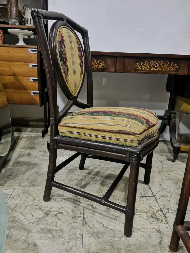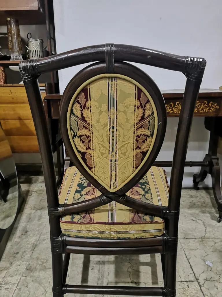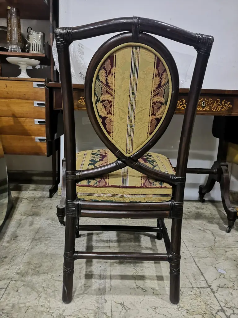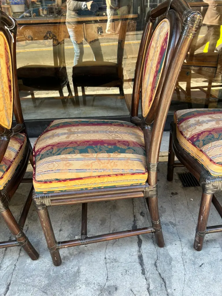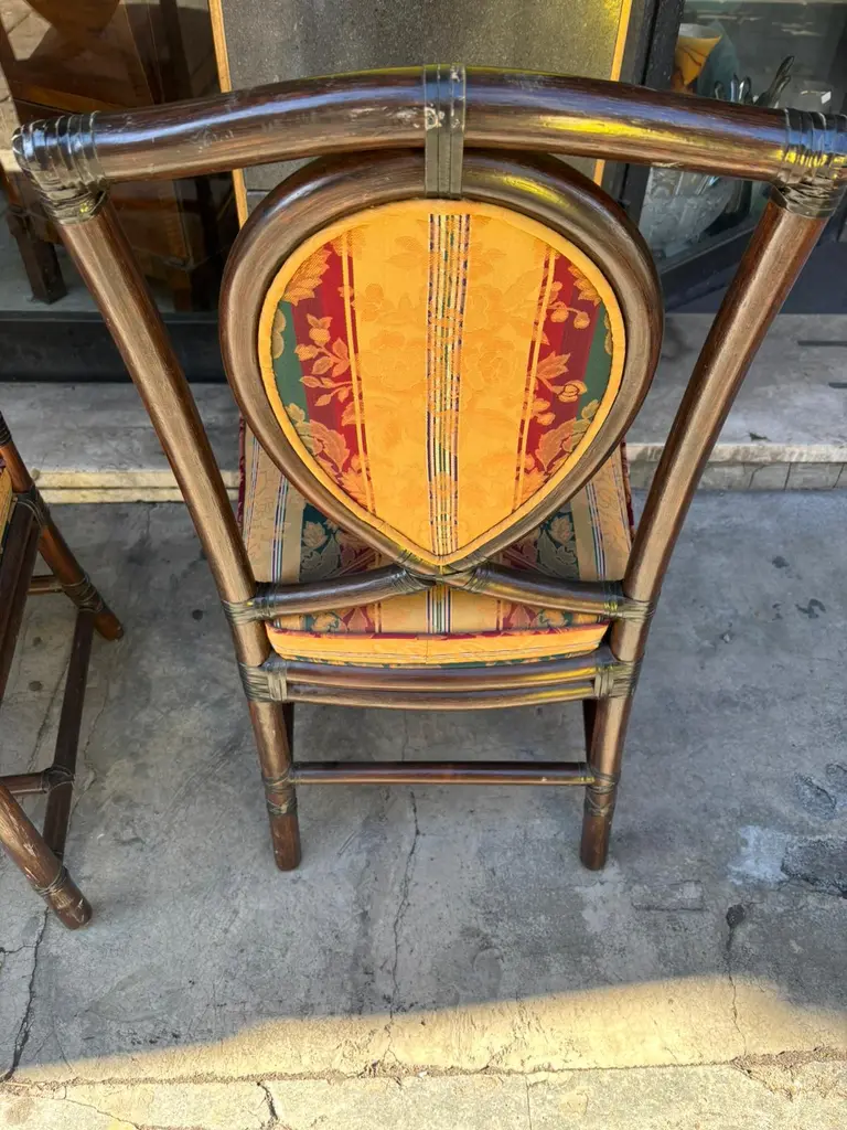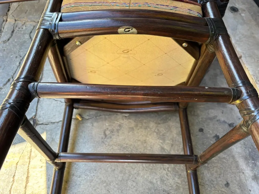 Set of 6 Bamboo dining chairs by Italo Gasparucci 1970s.The chairs are original with the Gasparucci logo fabric as visible in the photo and with the original upholstery.They are in good condition with normal wear and tear from time and do not need any intervention other than normal maintenance.N.B. the color of the upholstery looks different because the photos were takendaytime outdoors in sunlight, and the photo of the single chair was taken in the evening indoors.The chair measures:Height 95 cm Width cm 49 Seating depth cm 46 Seat height cm 48Careful dispatch.