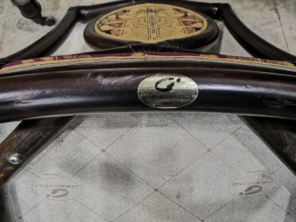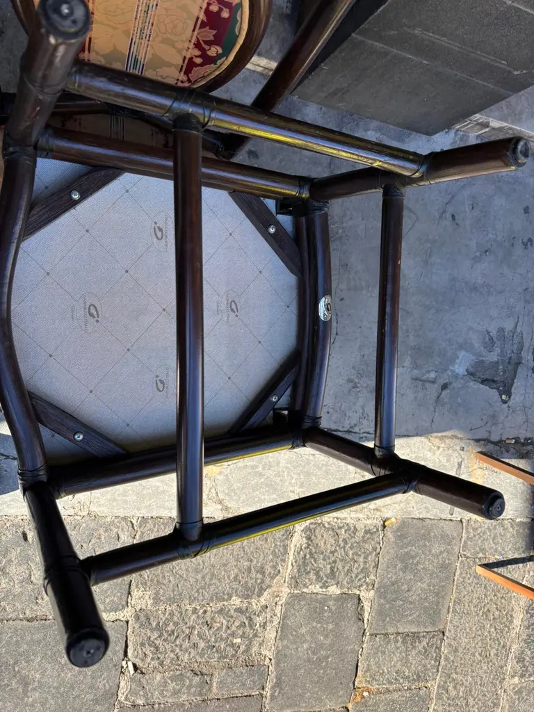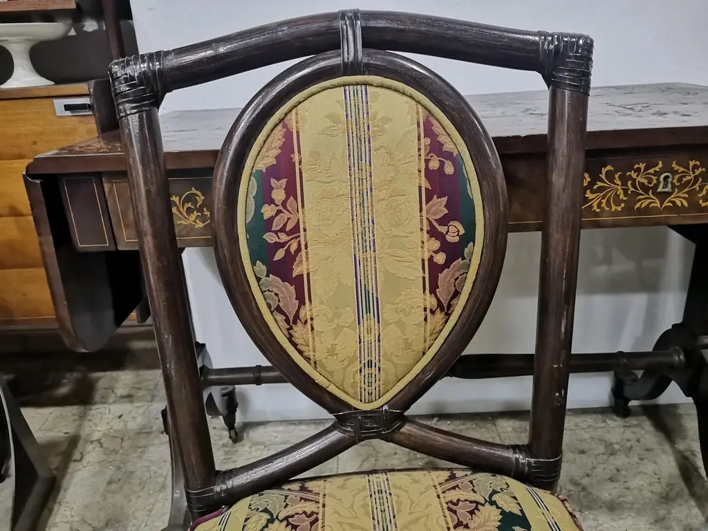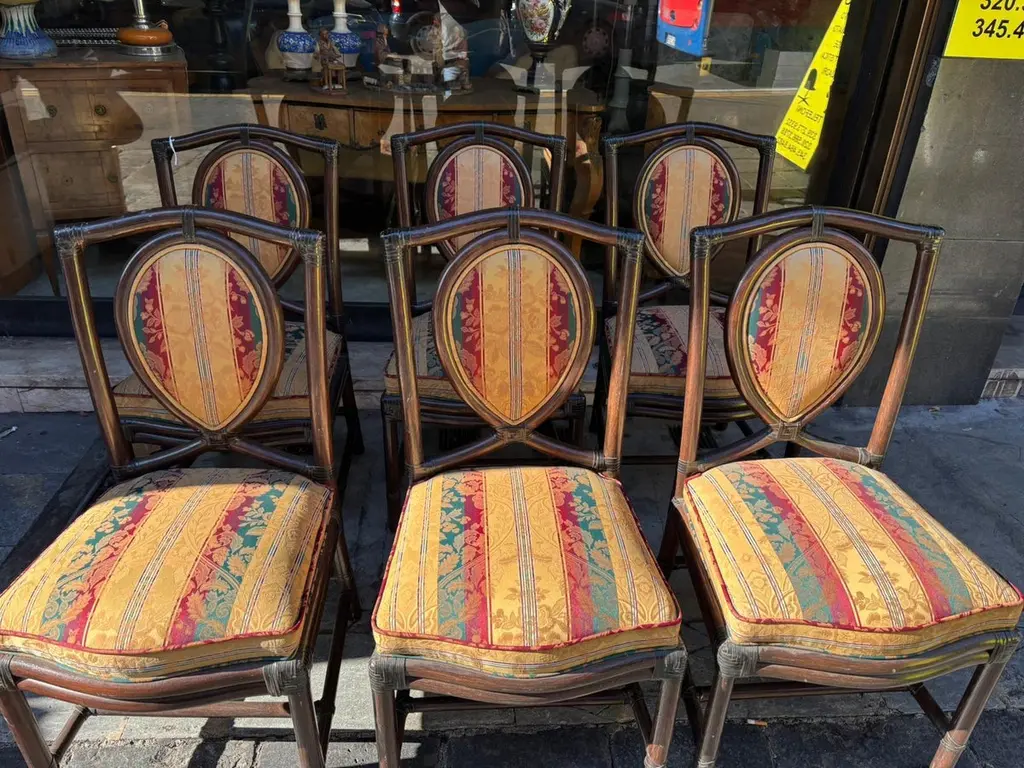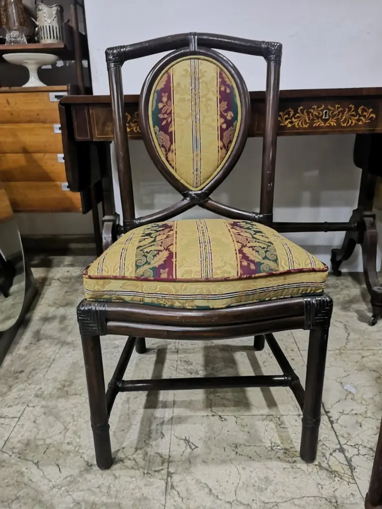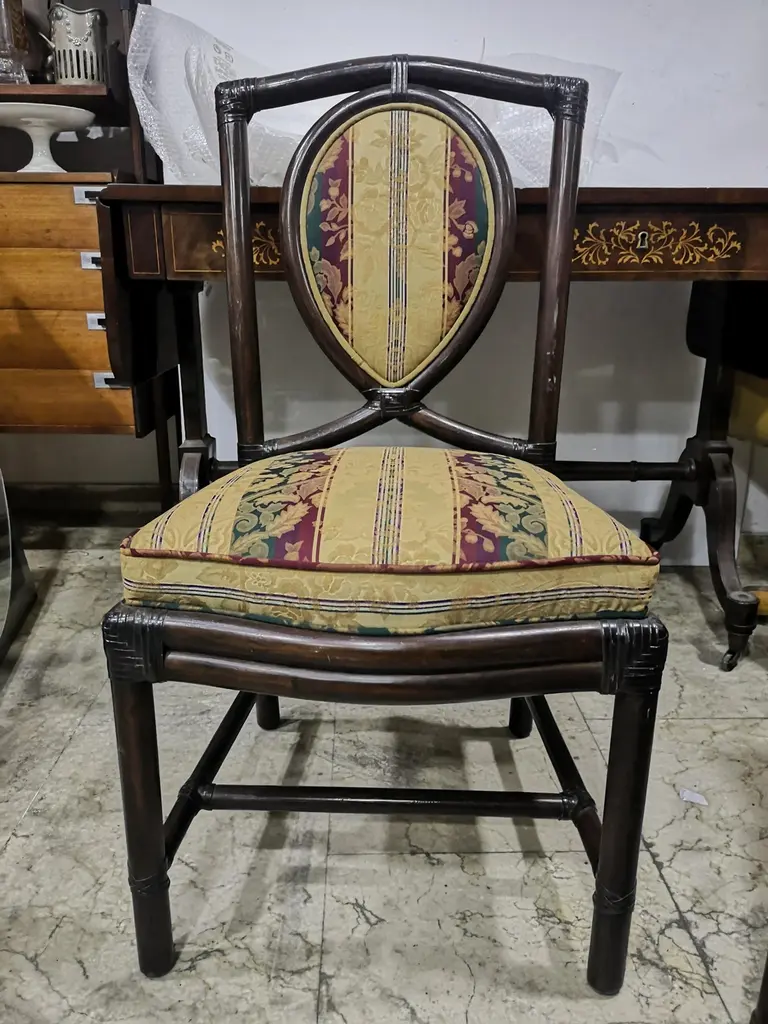 Set of 6 Bamboo dining chairs by Italo Gasparucci 1970s.The chairs are original with the Gasparucci logo fabric as visible in the photo and with the original upholstery.They are in good condition with normal wear and tear from time and do not need any intervention other than normal maintenance.N.B. the color of the upholstery looks different because the photos were takendaytime outdoors in sunlight, and the photo of the single chair was taken in the evening indoors.The chair measures:Height 95 cm Width cm 49 Seating depth cm 46 Seat height cm 48Careful dispatch.
