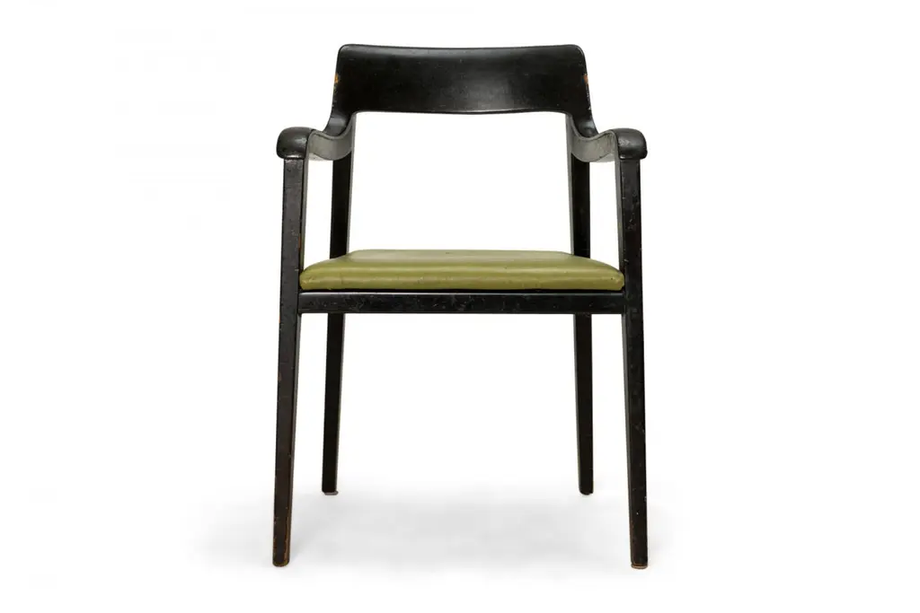 Set Of 6 Edward Wormley For Dunbar 'Riemerschmid' Black And Green Dining Chairs
