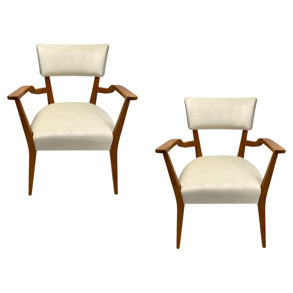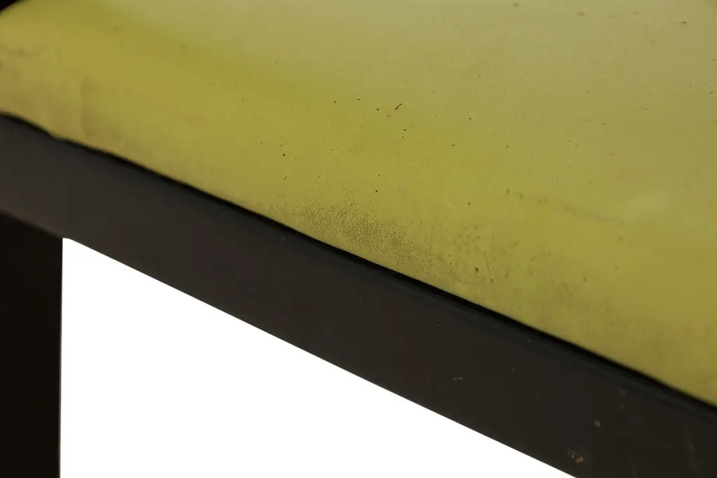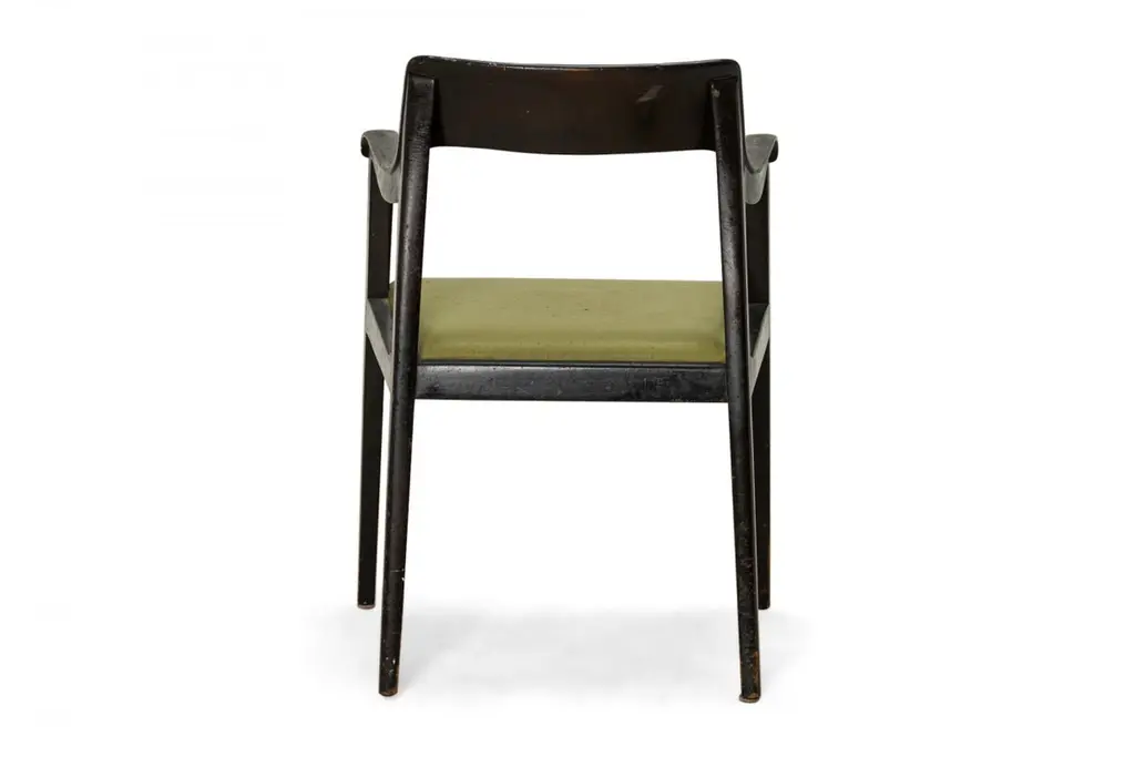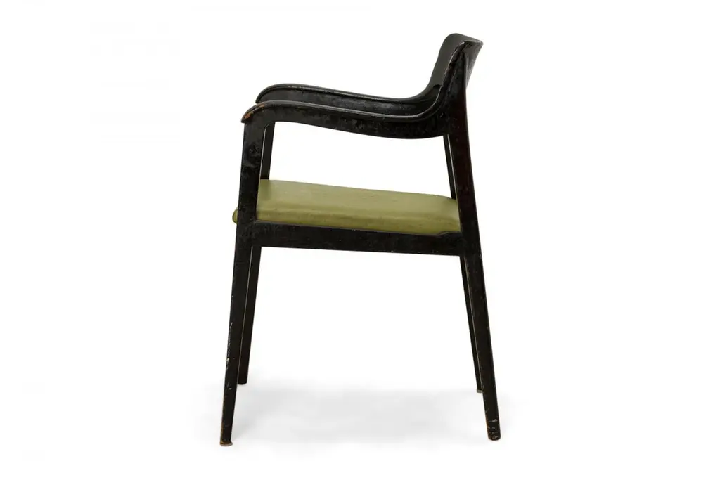 SET of 6 American Mid-Century 'Riemerschmid' dining armchairs with black painted wooden frames and bright green upholstered slip seats. (EDWARD J WORMLEY FOR DUNBAR FURNITURE COMPANY)(PRICED AS SET).