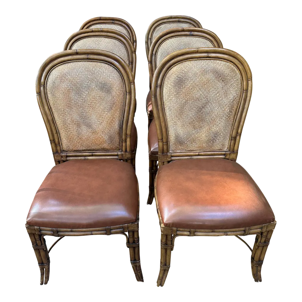 Set Of 6 Mcguire Bamboo Dining Chairs