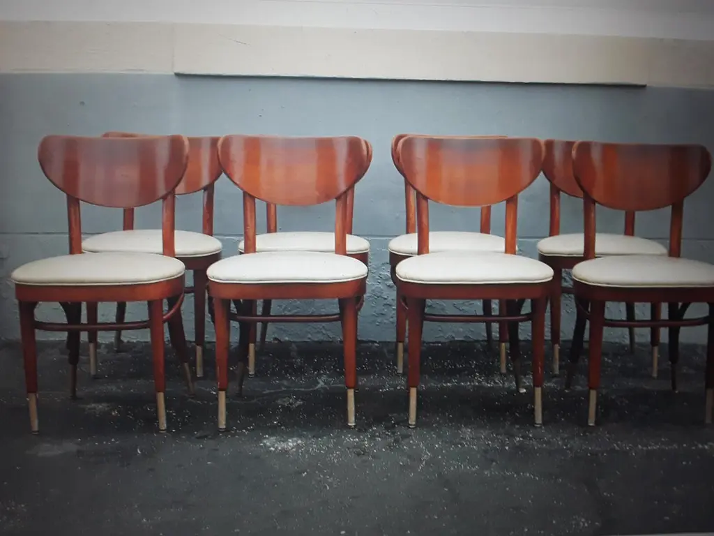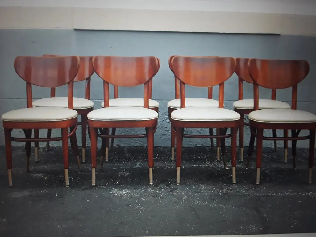 Set Of 6 Mid Century Modern "George Jetson" Style Bent Wood Dining Chairs