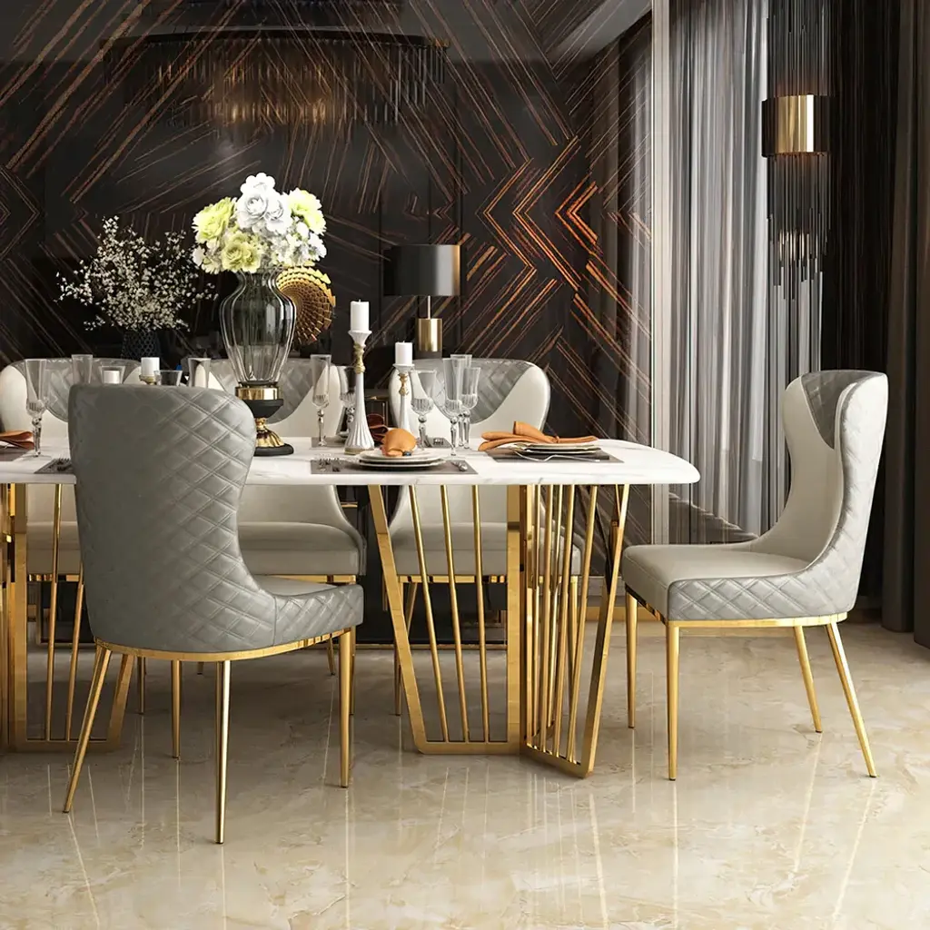Set Of 6 Modern Dining Chairs With Pu Leather Upholstery Gray