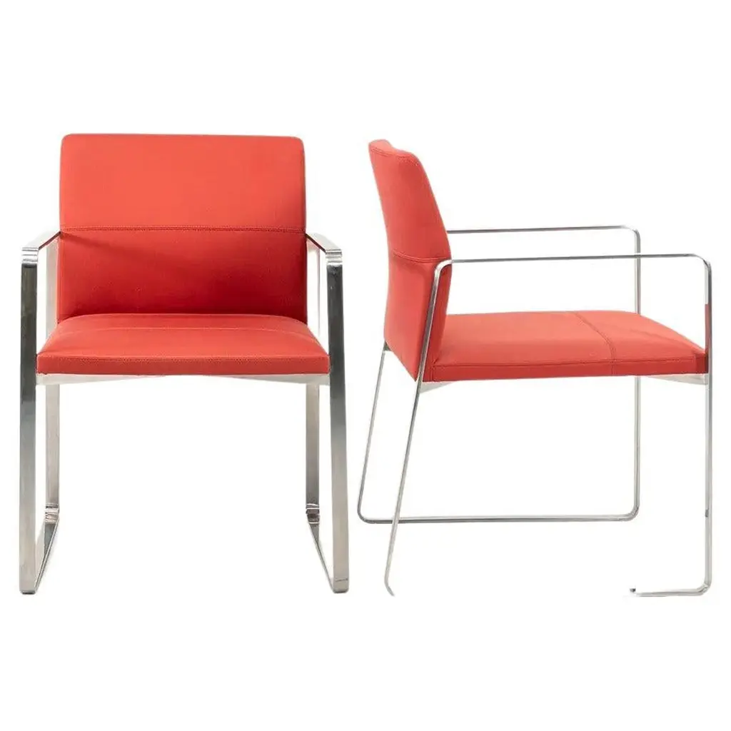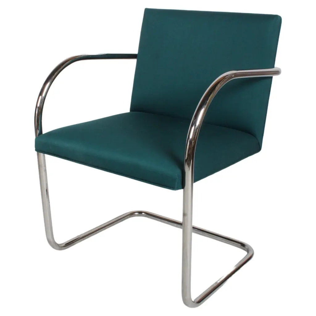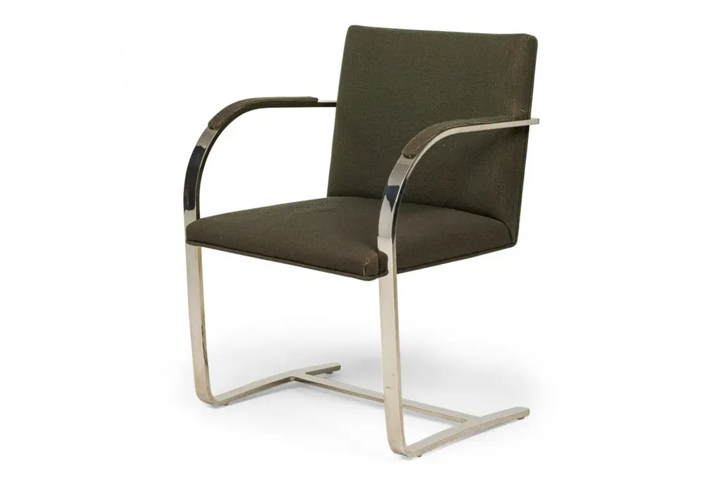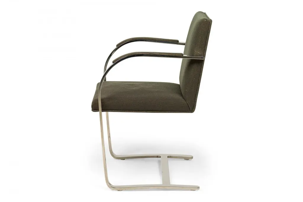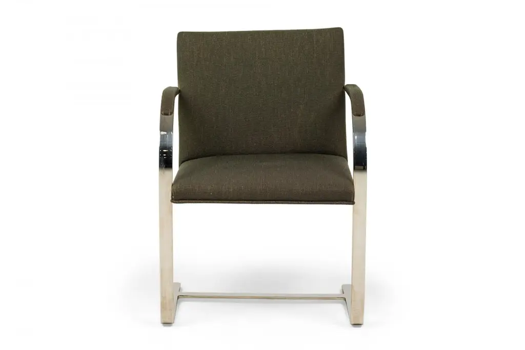 Set Of 8 Brueton 'Brno' Gray Upholstered Chrome Dining Armchairs
