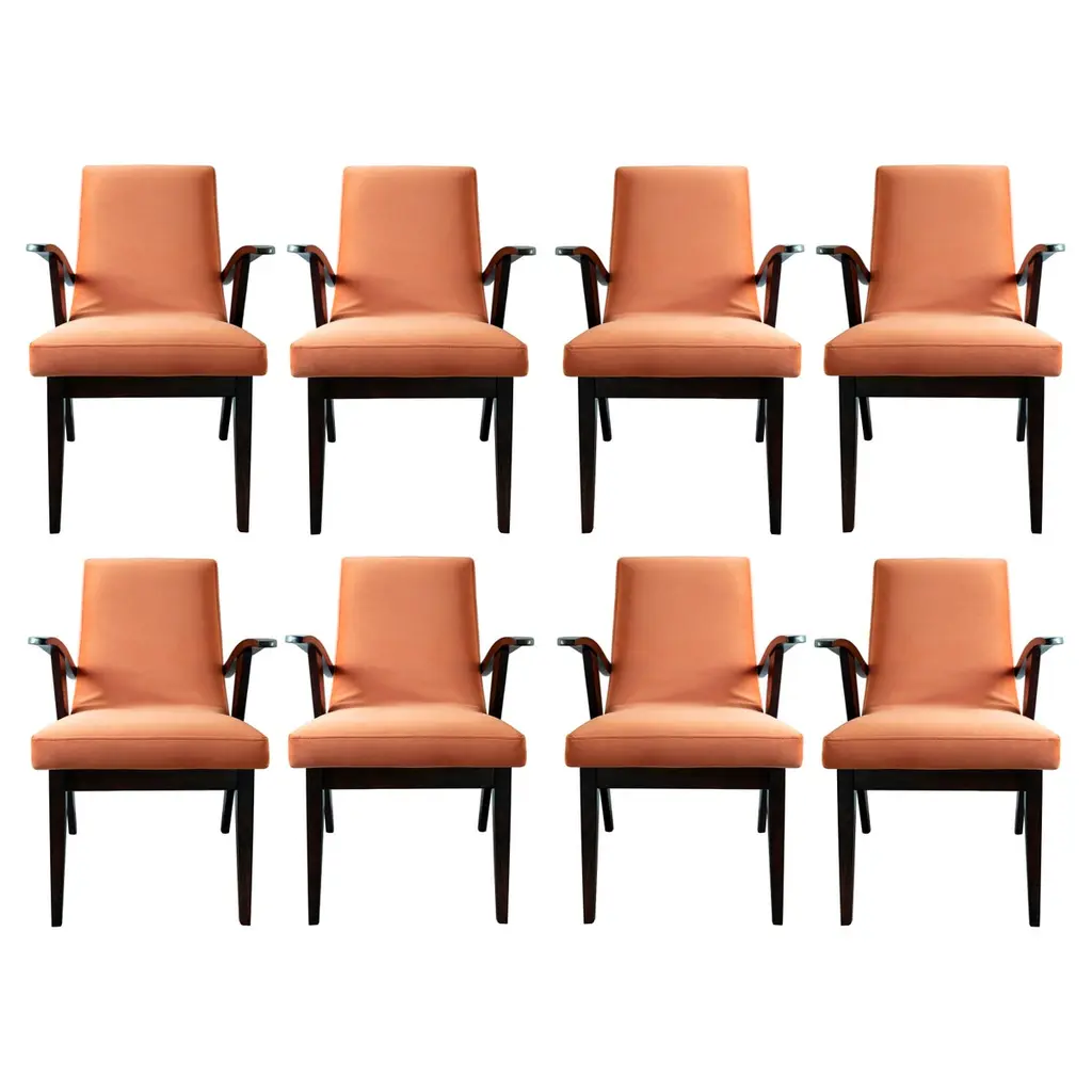 Set Of 8 Extra Wide Dining Chairs In Cream Leather
