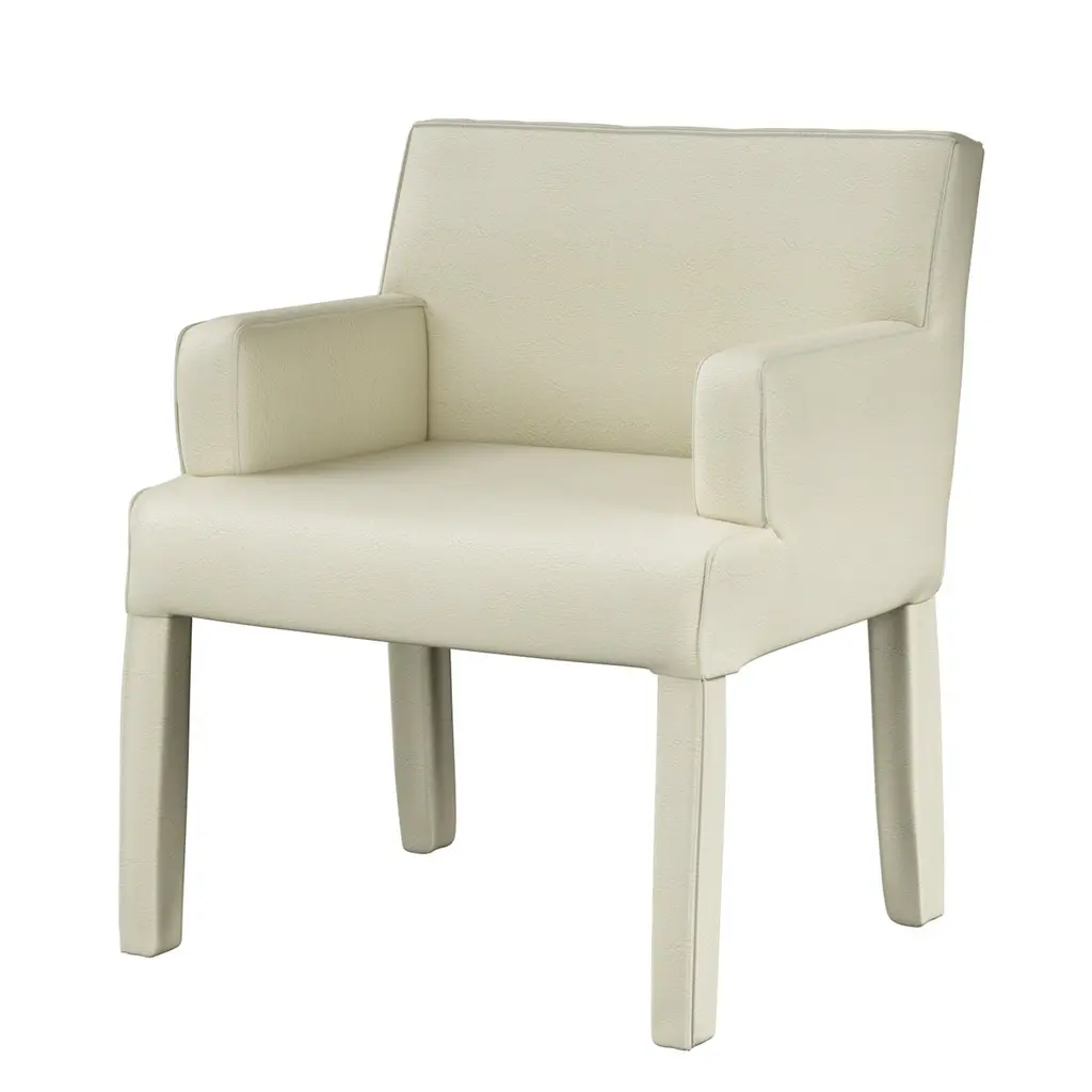 Extra wide dining chair with arms featuring upholstered legs and a stitched seam on the outside. Materials: solid wood, contract grade faux leather.Pictured materials: Cream faux leather.Available in COM upon request. Contract grade.Handcrafted in Portugal.Please contact us if you have any questions about customization and pricing. We will be glad to check with the factory’s technical team if sizes, finishes, and colors can be customized. We do our best to expedite production and to ship and deliver product within the listed lead time, however current lead times might be longer due to global shipping backlog and delays. These delays are out of our control and cannot be a reason to cancel an order.