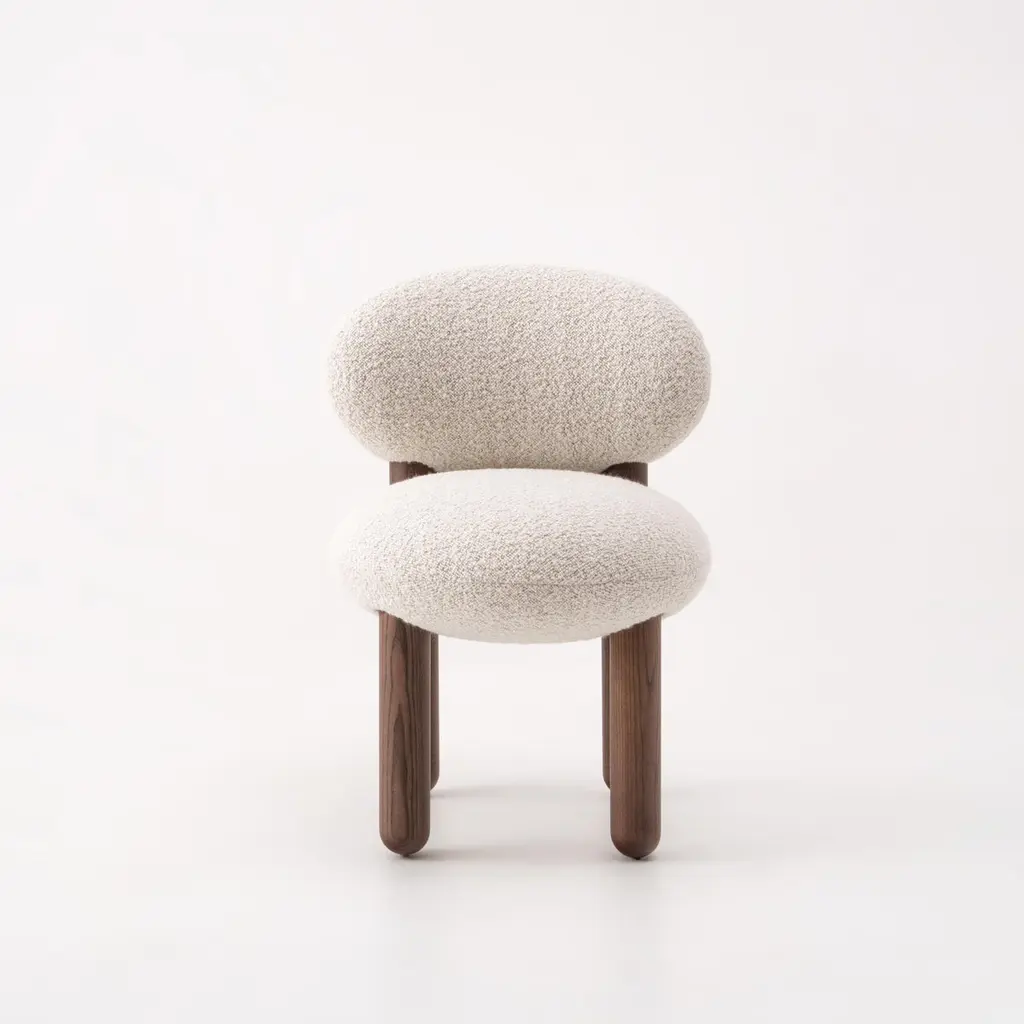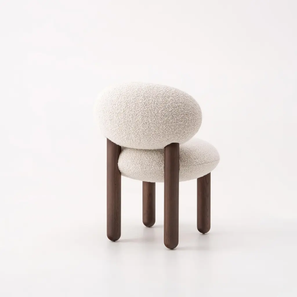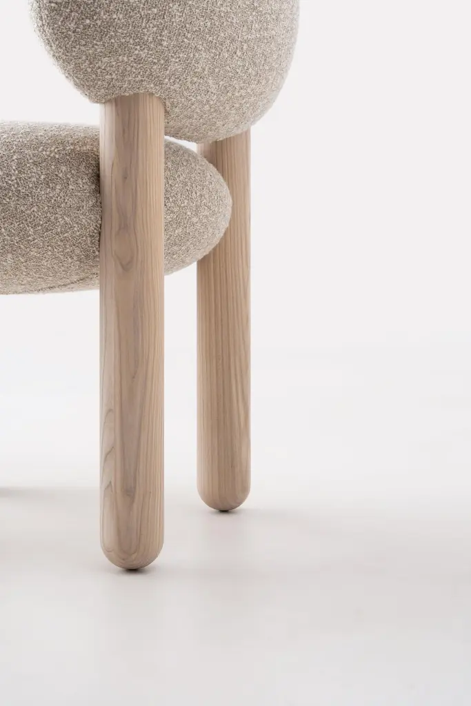 The "Flock" collection embodies the idea that home should be a haven of comfort, a sanctuary, and a gathering place adorned with personalized, character-rich, and visually striking statement objects. The name "Flock" reflects its role as a tranquil oasis and central meeting space within the home, where soft, voluptuous forms, natural materials, and pleasing tactile surfaces create an ambiance of warmth and cocooning.Designer Kateryna Sokolova explains, "Home is the most intimate place for rest, comfort, and gathering, and it should be filled with personalized, character-rich, and eye-catching statement objects like Flock design pieces. In addition to the distinct shape, I wanted to create furniture that would become part of the family, a friend, intimate, and beloved."Ergonomics plays a pivotal role in NOOM's design philosophy, ensuring that its products are aesthetically pleasing and incredibly comfortable. The Flock Chair, characterized by its smooth wide backrest and spacious, comfortable seat, results from extensive research, numerous prototypes, and the meticulous craftsmanship of local artisans under the designer's close supervision.The Flock Chair epitomizes NOOM's commitment to delivering an exceptional design that transcends adversity, providing functional furniture and cherished companions for future generations.Designer: Kateryna SokolovaMaterials: wood, plywood, metal, molded foam, textileAvailable in a wide range of colors and other finishes and fabrics on request.Dimensions: H 78 cm, W 55 cm, D 61 cm seat H 47 cm