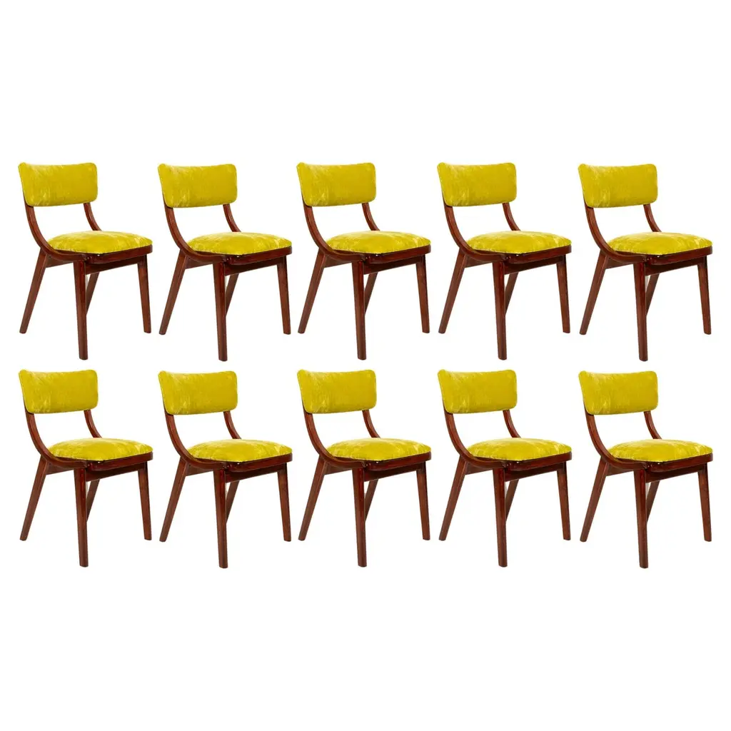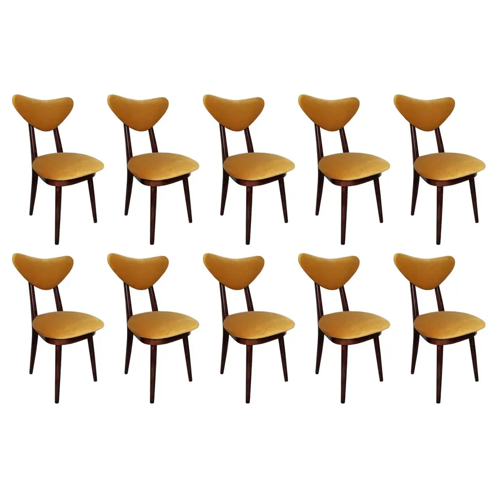 Set Of Eight Mid Century Butterfly Dining Chairs, Yellow Boucle, Europe, 1960s
