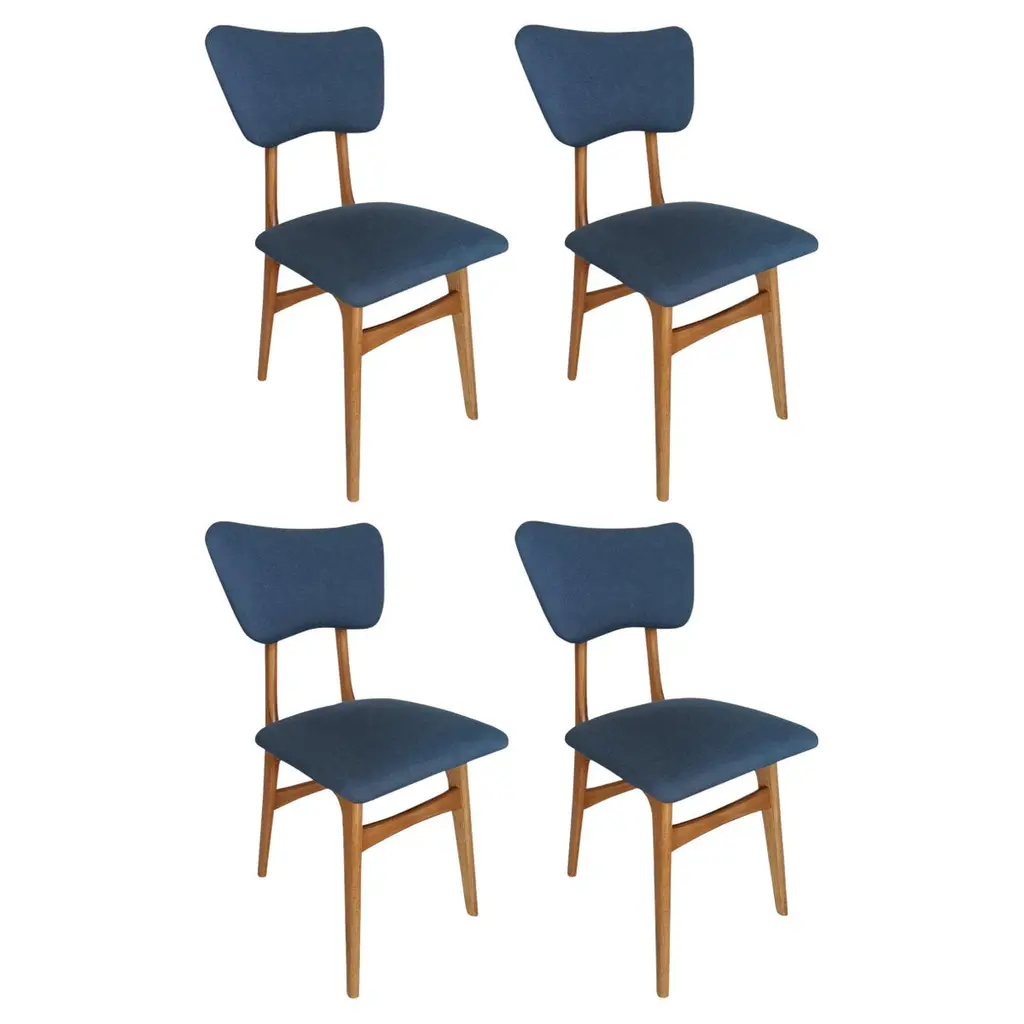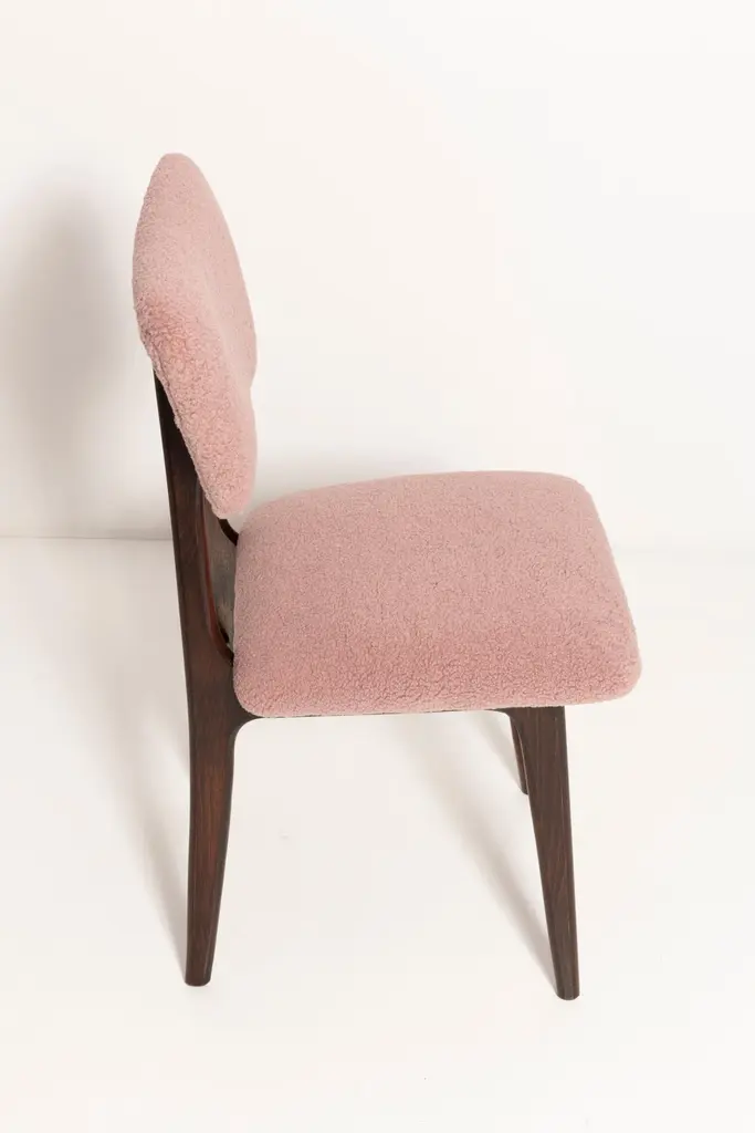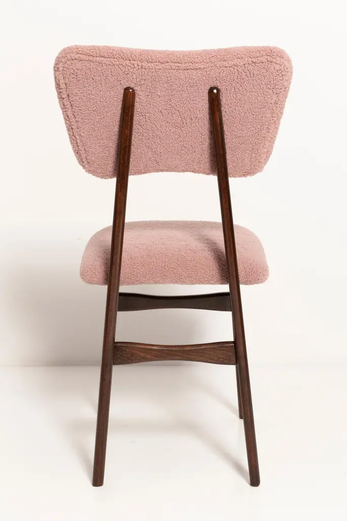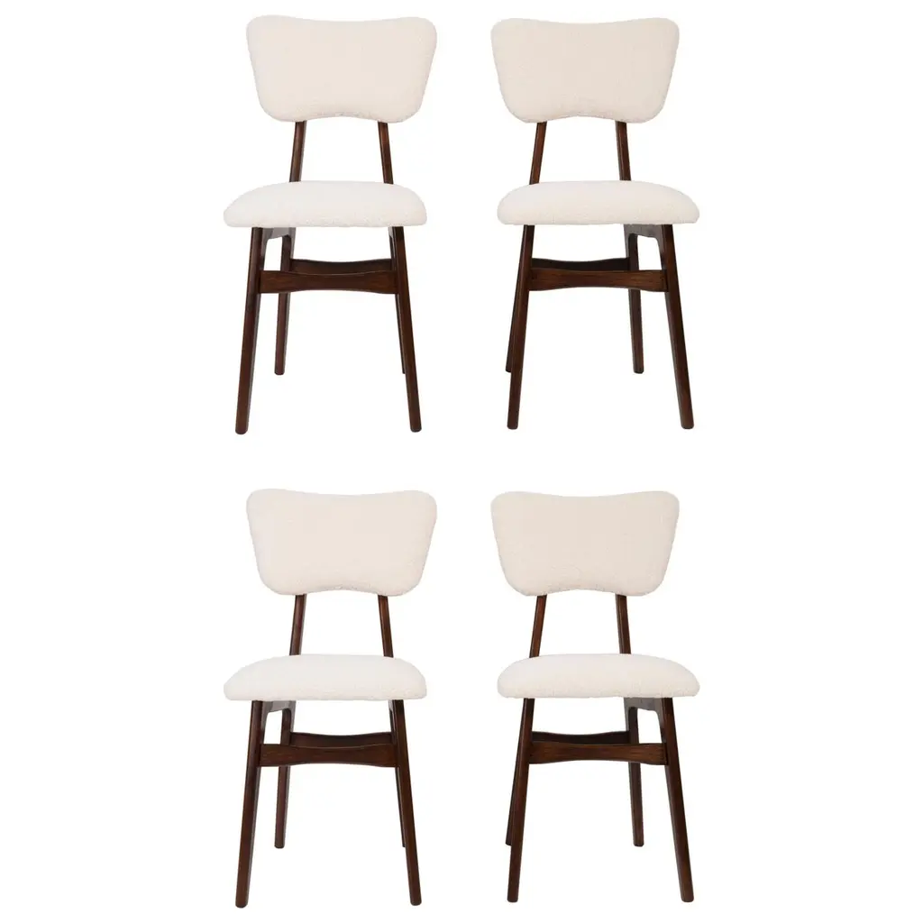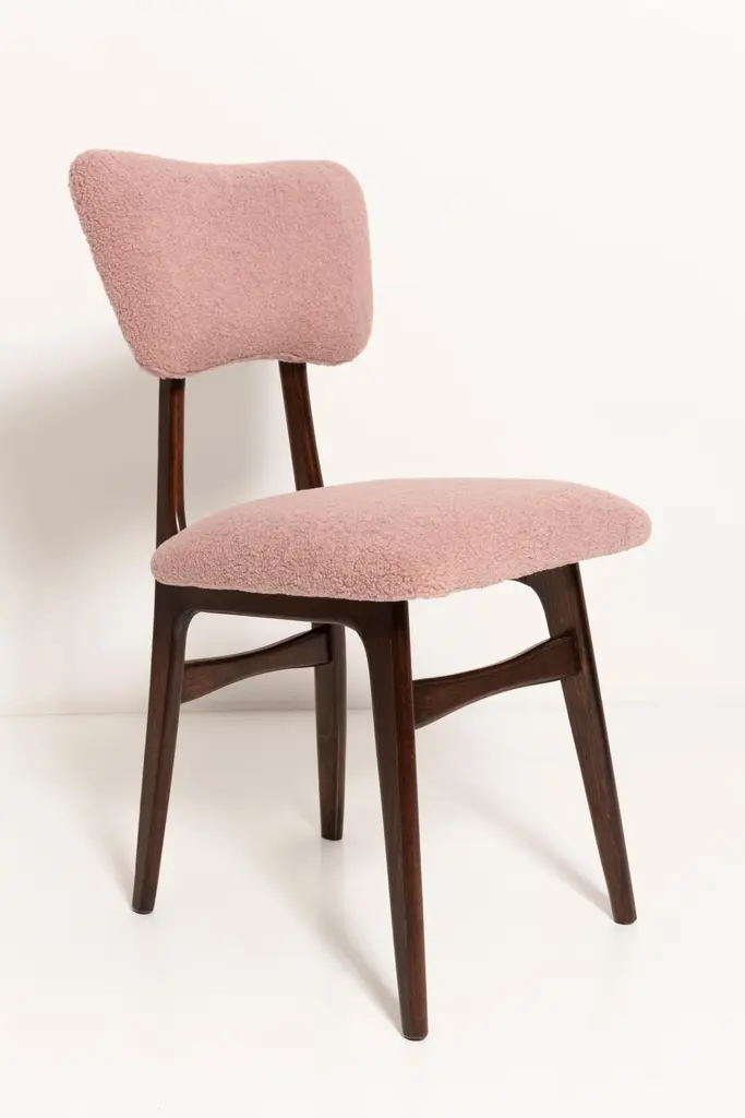 Dining chair called "Butterfly" with dark wenge stained beech legs and fully upholstered seat and back in beautiful boucle italian fabric (color number 03). This chair can be customized to your specifications or COM. Wood, stain, finish, fabric and custom dimensions options are available. Check the last picture with boucle color samples. This is vintage chair after professional renovation. Designed in 1960s in Poland. Here option of 4 chairs in a set. You can buy also more or less chairs if You need.