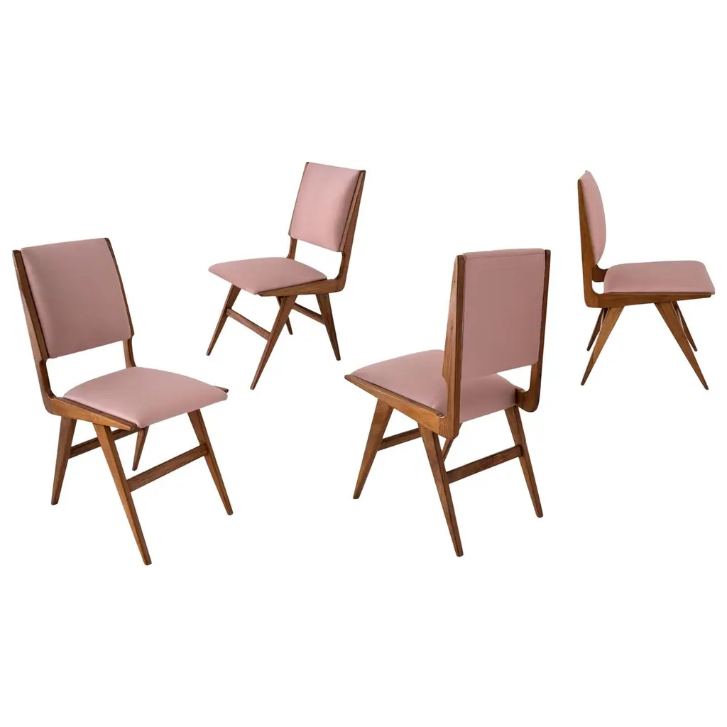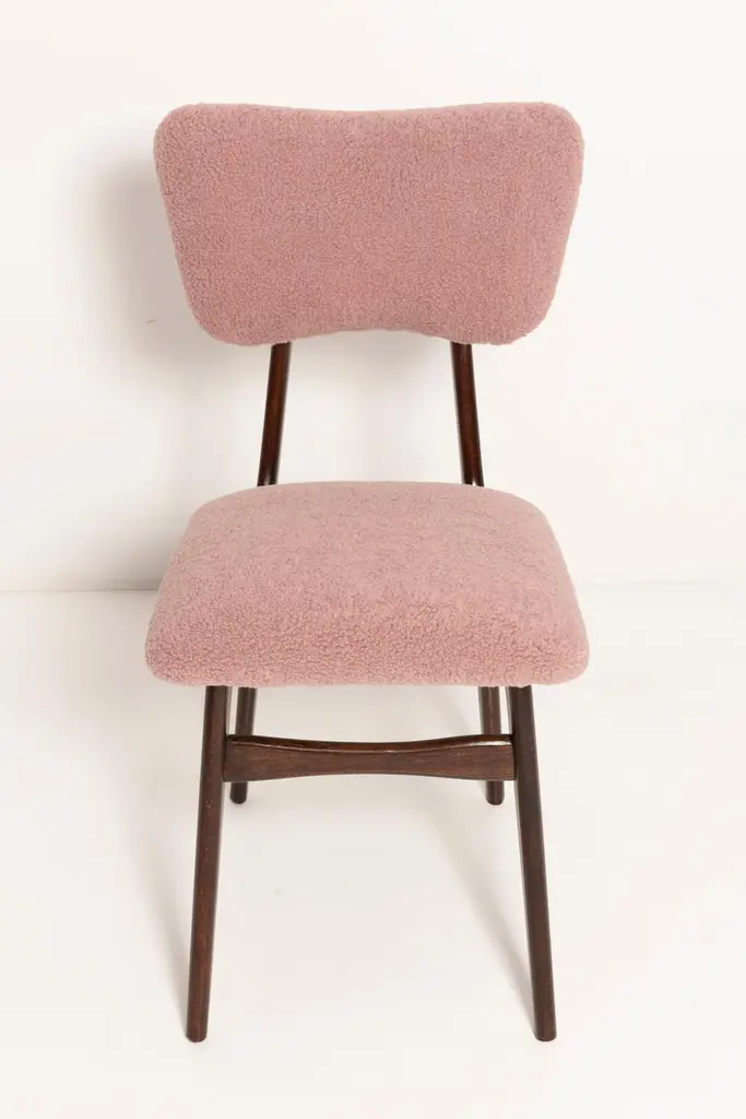 Set Of Four Mid Century Butterfly Dining Chairs, Pink Boucle, Europe, 1960s