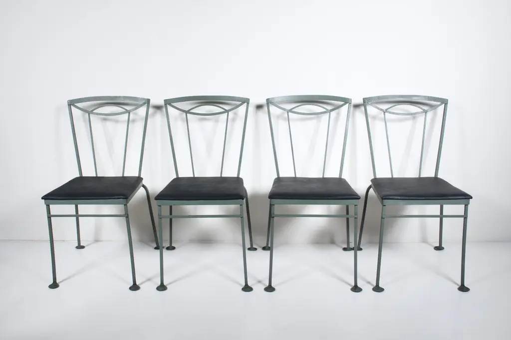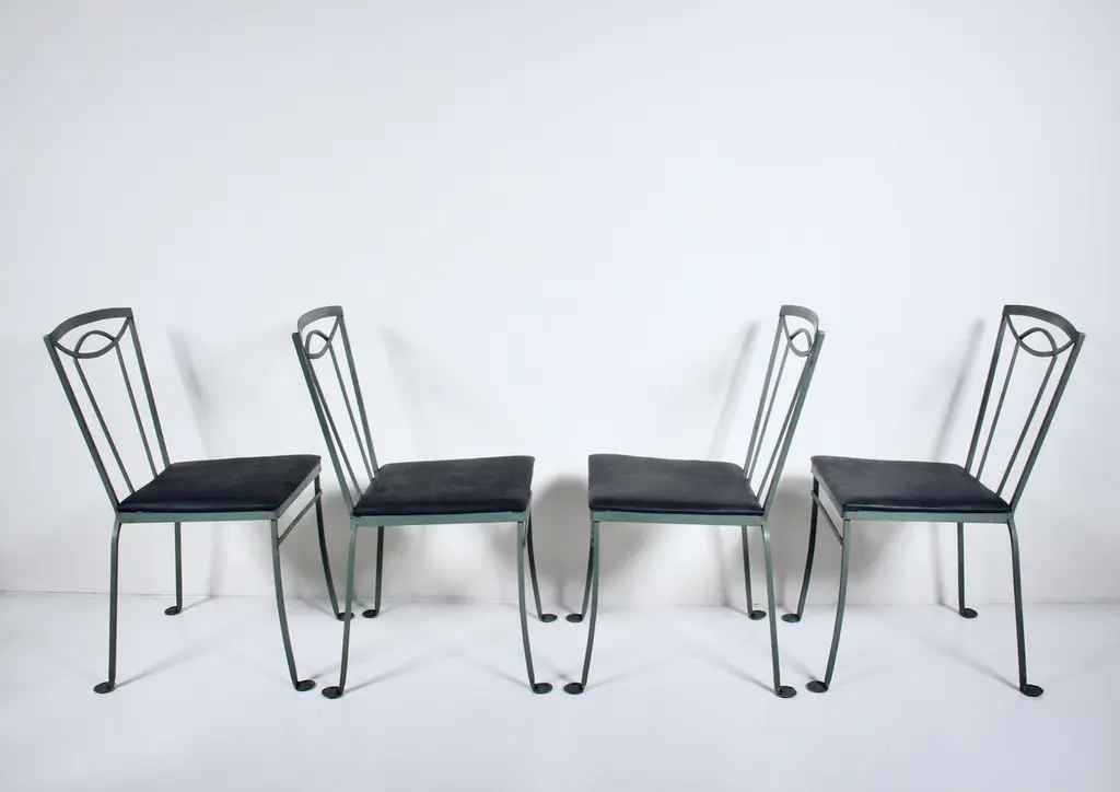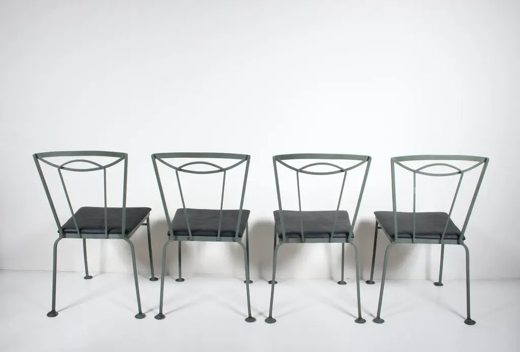 Set Of Four Tempestini For Salterini Wrought Iron Dining Side Chairs, Circa 1940
