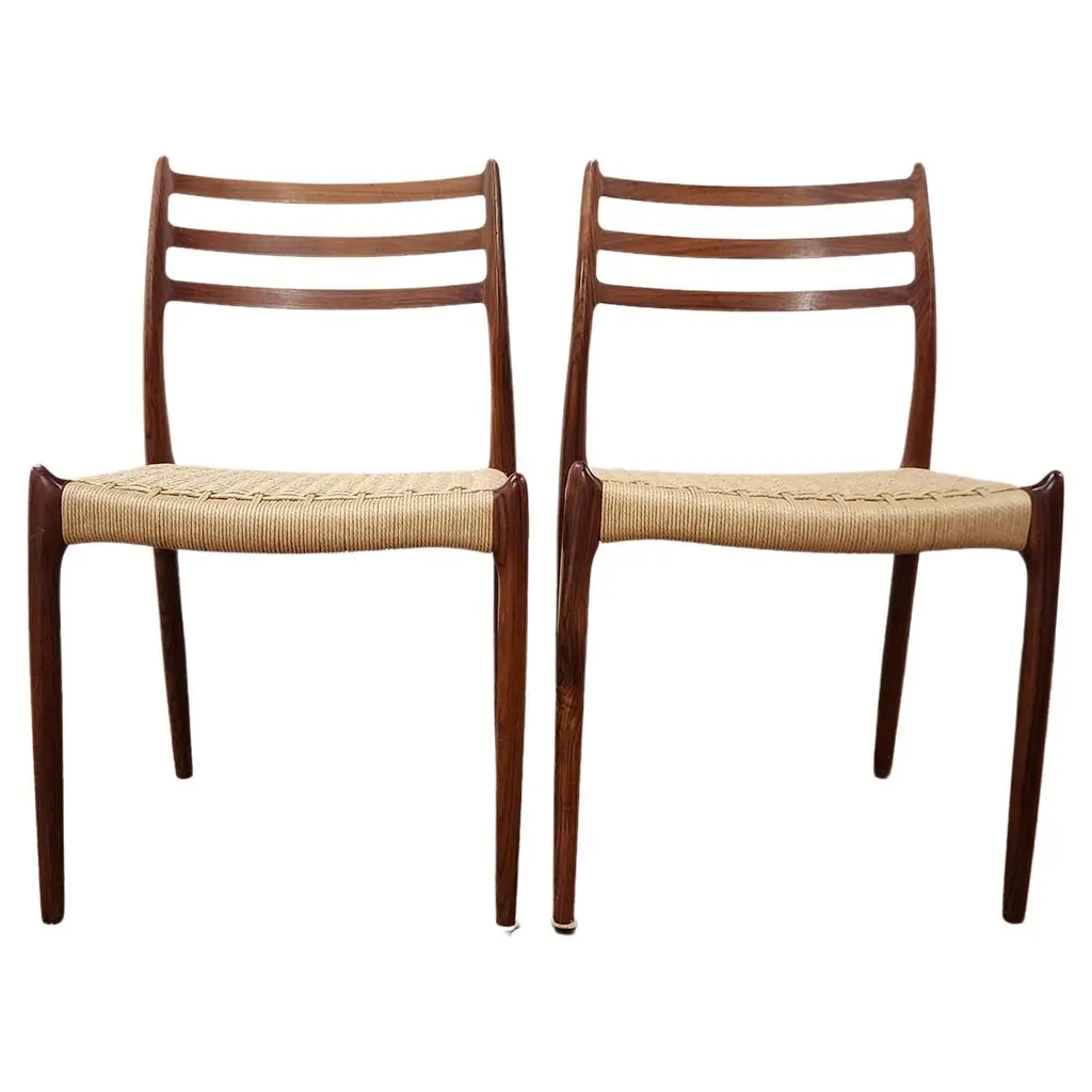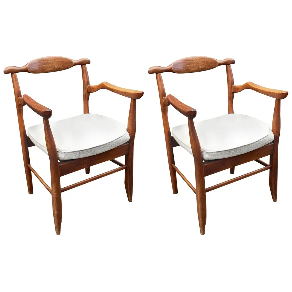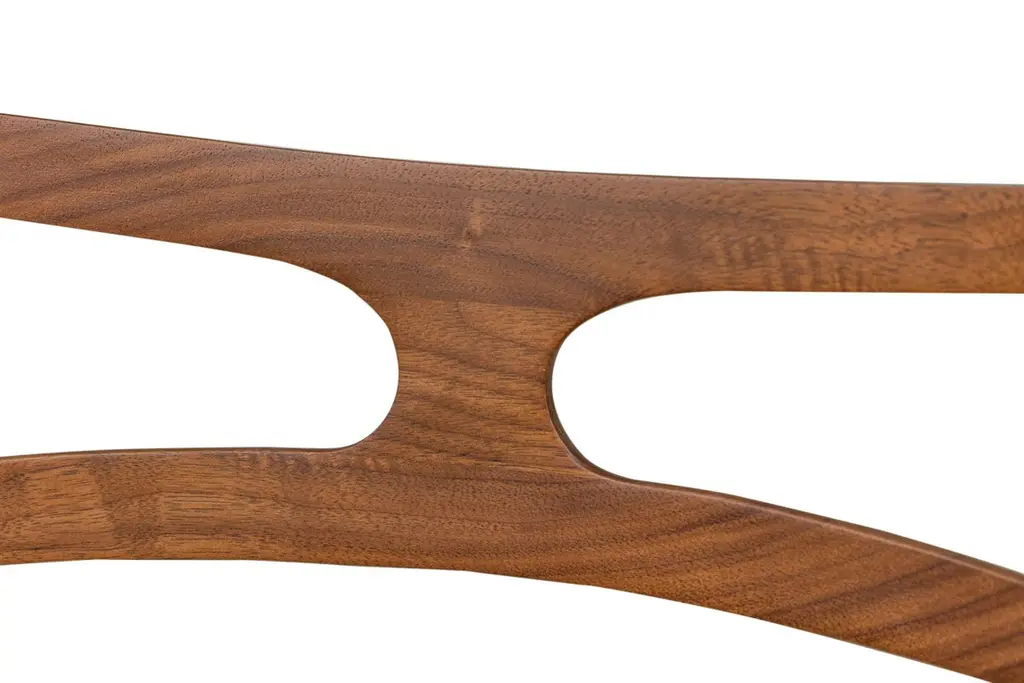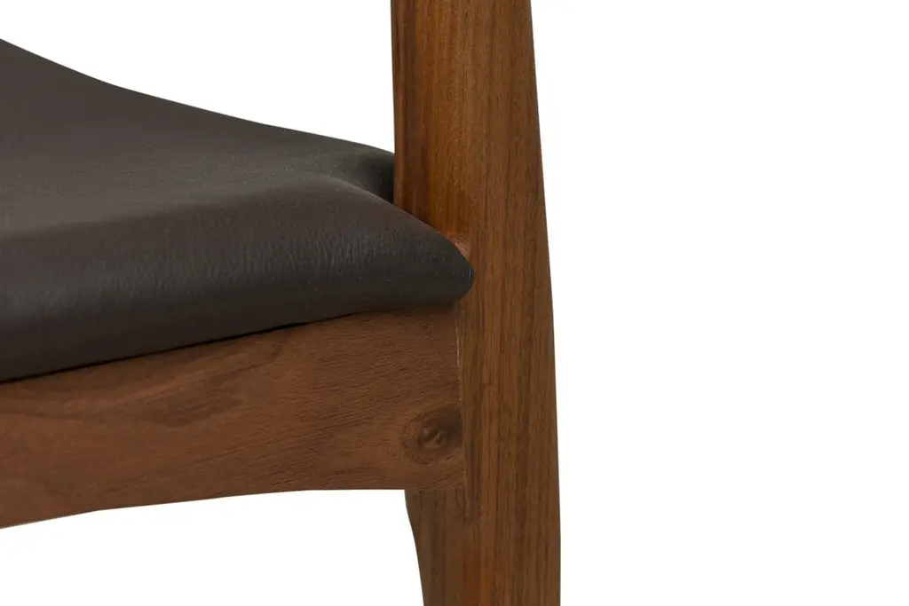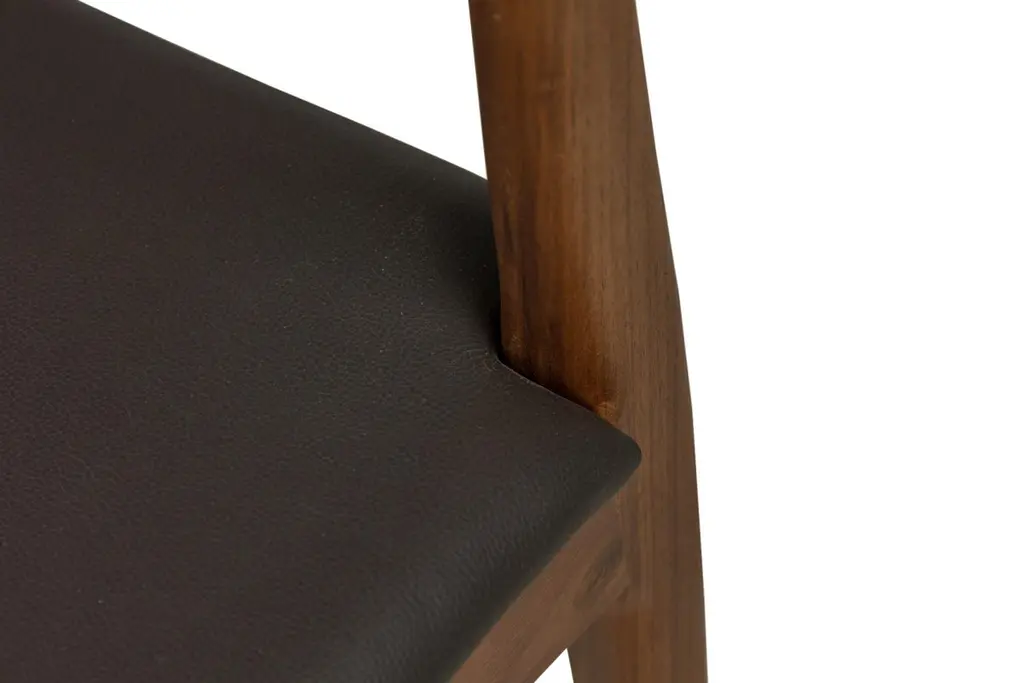 12 "HUGO" Mid-Century style dining chairs constructed of sustainably harvested FSC-certified American walnut, upholstered in leather. (PRICED EACH).Condition: Good; Wear consistent with age and use