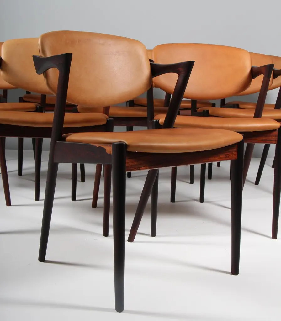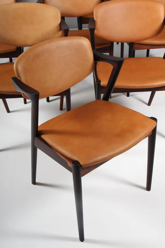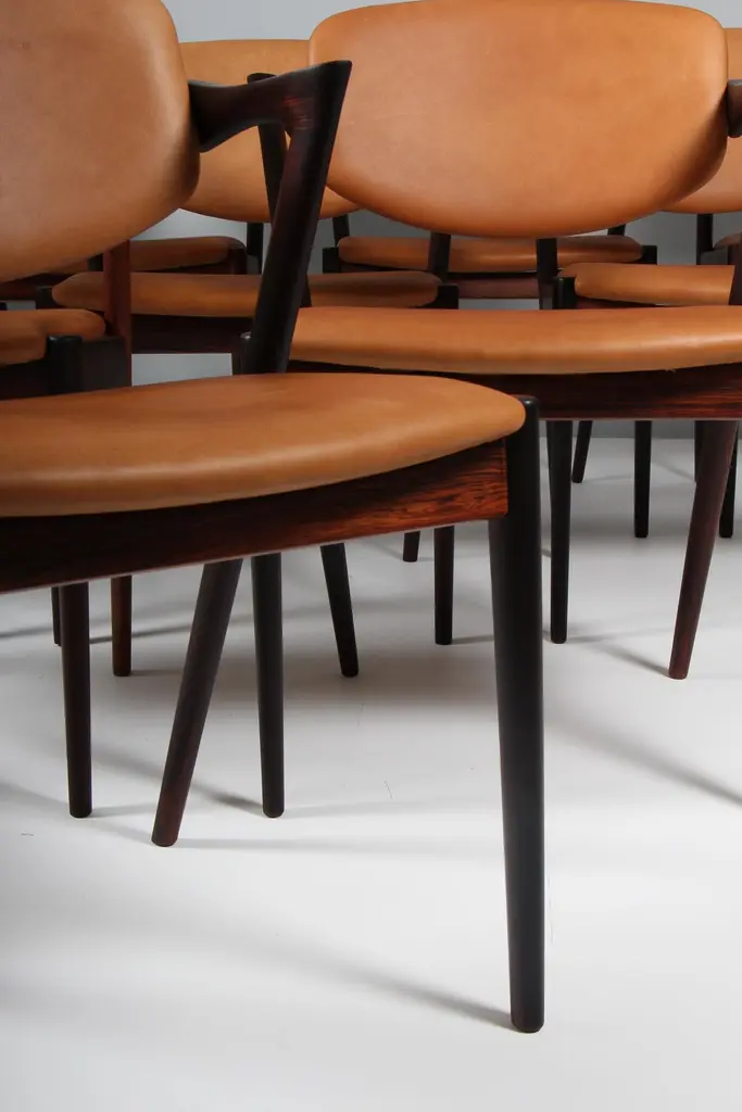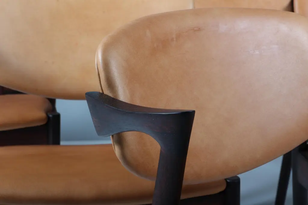 Set Of Kai Kristiansen Model 42 Dining Chairs, Rosewood, Aniline Leather, 1960s