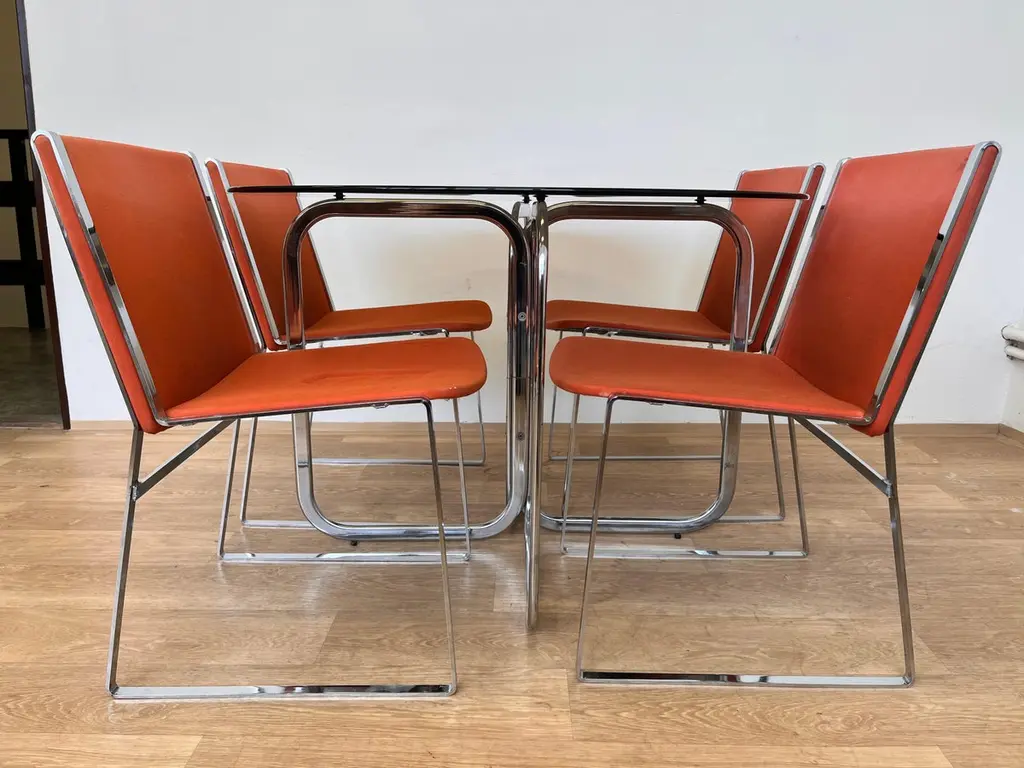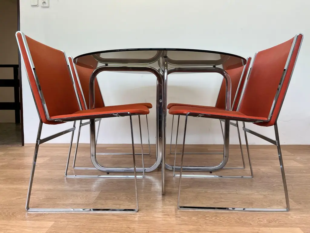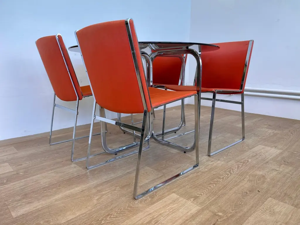 Set Of Mid Century Design Chrome Dining Chairs And Table 1970s