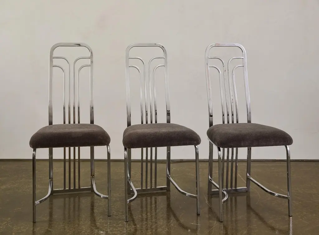 Set Of Six Chrome Art Deco Dining Chairs With Mohair Upholstery