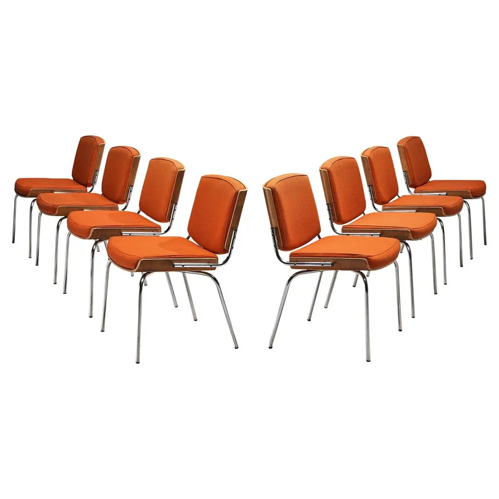 Set Of Six Mid-Century Modern Dining Chairs, Milo Baughman Style, Chrome, Fabric