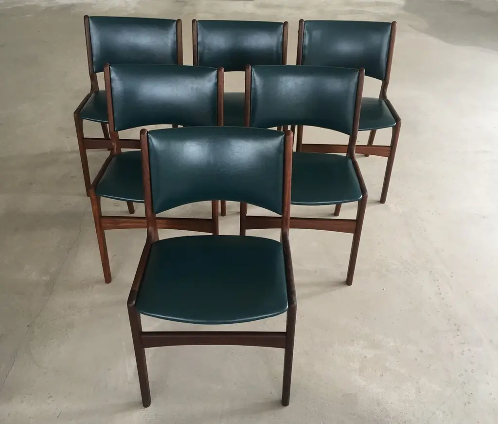 Set Of Six Restored Erik Buch Dining Chairs In Solid Teak, Custom Upholstery