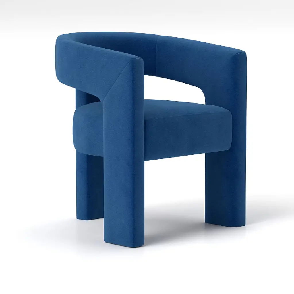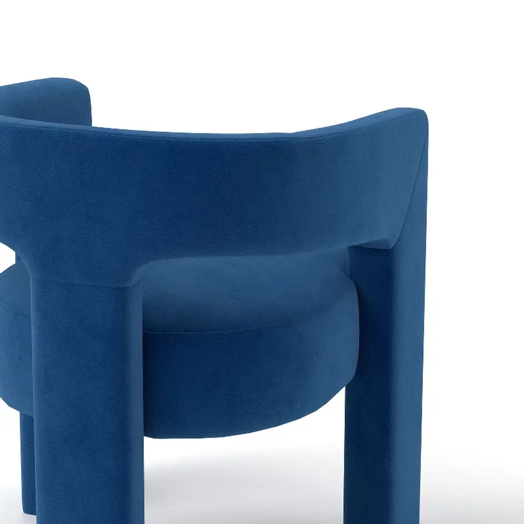 This elegantly designed armchair boasts a luxurious velvet fabric that exudes sophistication and comfort. The standout feature of this chair is its integrated armrest and leg design, seamlessly merging for a sleek and cohesive look. The chair's three legs are crafted in a unique arching hollow structure, forming a stable triangular base that combines both style and sturdiness. This distinctive design not only ensures a solid foundation but also adds a touch of modern flair to any space. Perfect for a variety of settings, this armchair is an ideal addition to dining rooms, living rooms, and bedrooms, offering both aesthetic appeal and practical functionality. Product Information: Product Type: Dining chair Quantity:4 Assembly Required: Yes Weight Capacity: 250 lbs/pc Item weight: 19lbs/pc Item Size:24.6''W*22.4''D*29.5''H Chair Leg Height:12.6in Material: Teddy Velvet Frame Material: Manufactured Wood and Metal Back Fill Material: High Density Sponge Seat Fill Material: High Density Sponge Back Type: minimalist Design Note: Product measurements are subject to manual measurement errors.