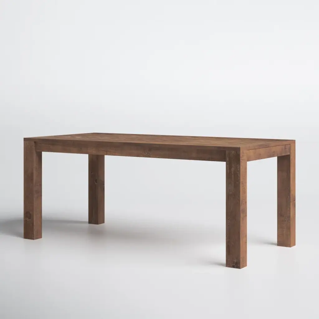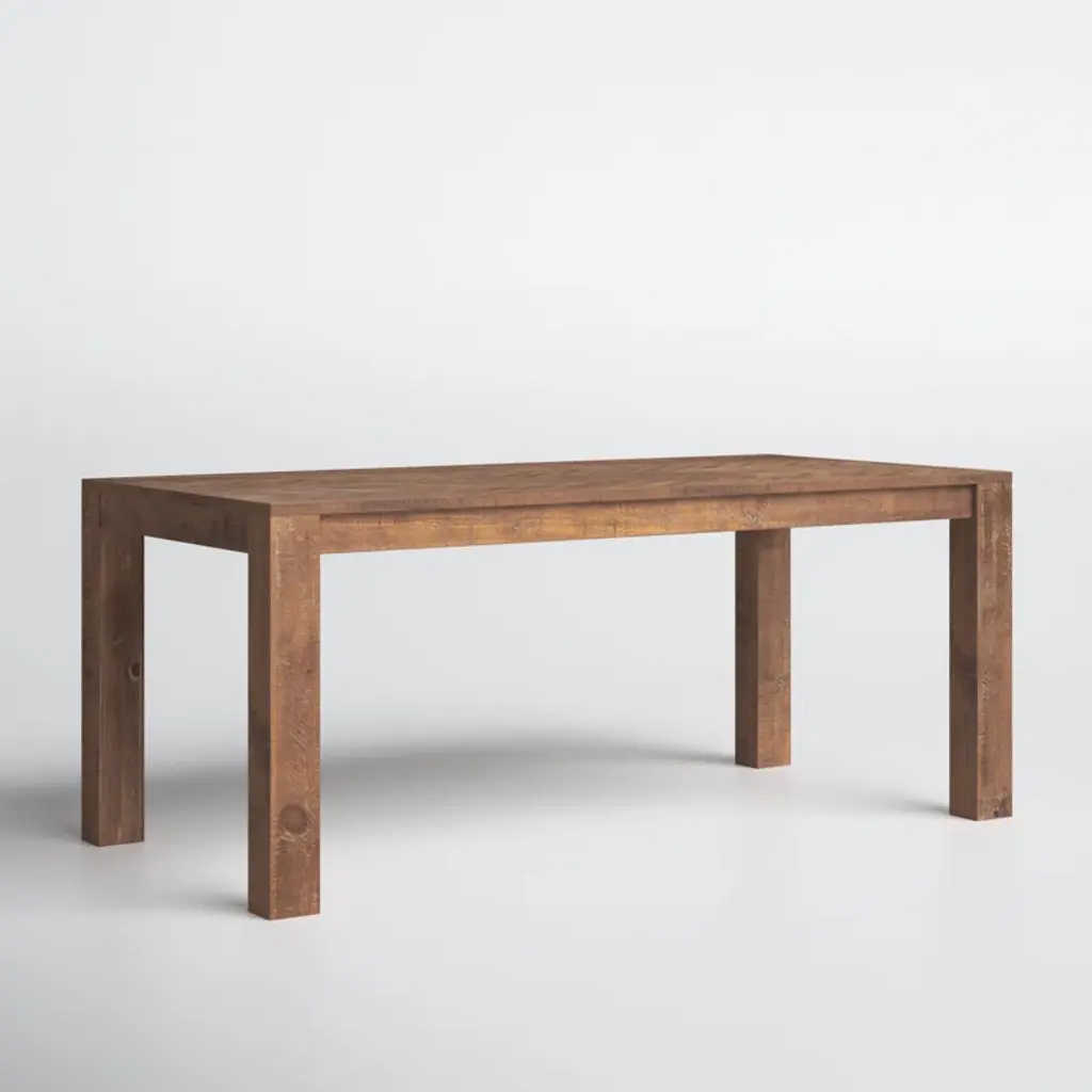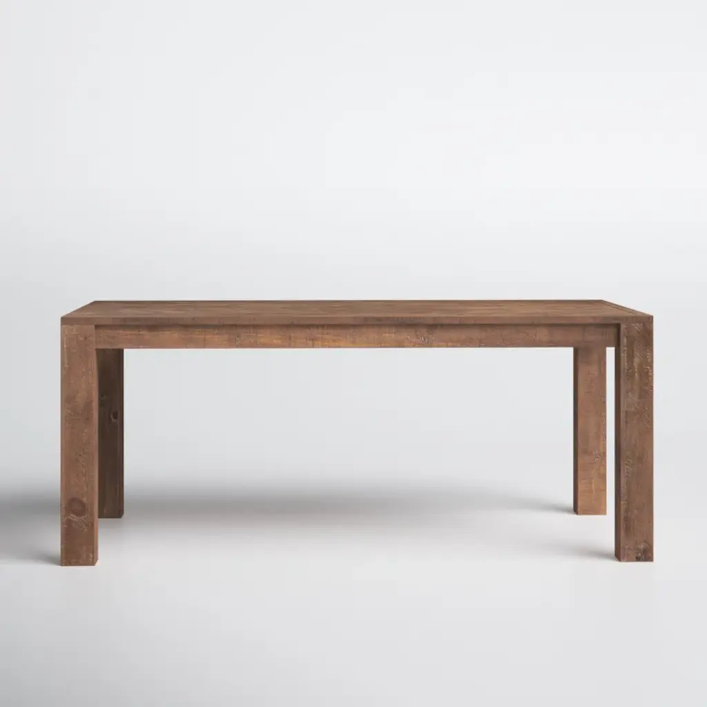The collection creates an enticing atmosphere in your dining room that reflects a fashionable take on a rustic style. Rendered in a natural weathered (brown) finish on pine solids, this dining set embodies traditional character with a cool and casual attitude. The tabletop features an inlaid chevron pattern.