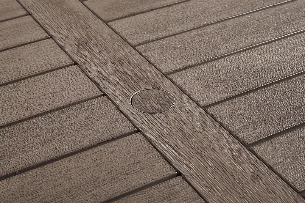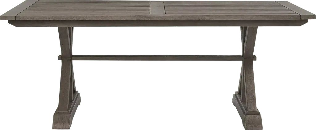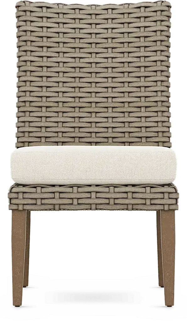 Make mealtime memories on your patio with the Siesta Key dining set. Pairing a 76-inch solid eucalyptus table with all-weather wicker side chairs, this group is as durable as it is stylish. An umbrella hole in the center of the table can be capped when not in use. Each side chair features an attractive large weave design and a padded seat cushion in a UV-resistant desert beige color.