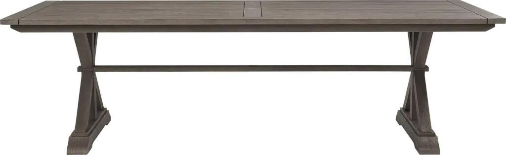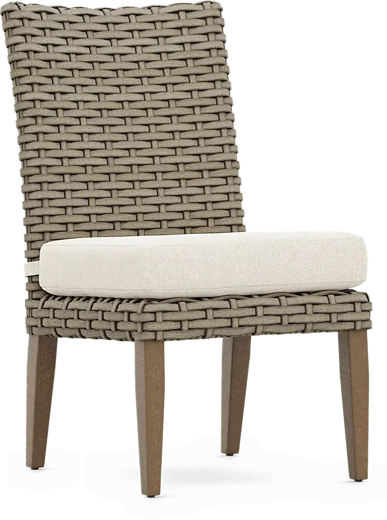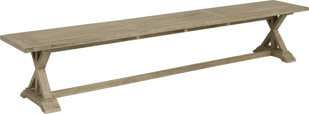 Make mealtime memories on your patio with the Siesta Key dining set. Pairing a 102-inch solid eucalyptus table with all-weather wicker side chairs and a comfortable bench, this group is as durable as it is stylish. An umbrella hole in the center of the table can be capped when not in use. Each side chair features an attractive large weave design and a padded seat cushion in a UV-resistant desert beige color.