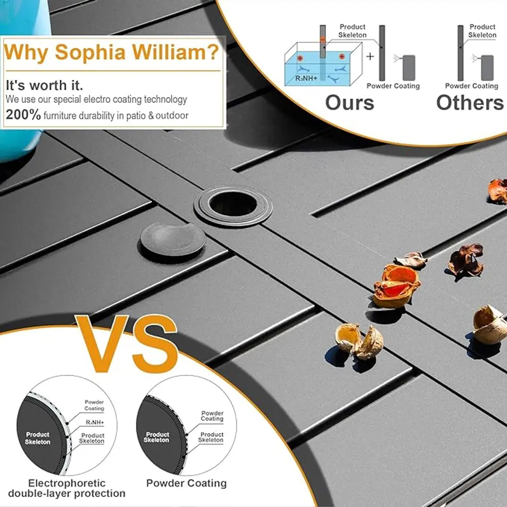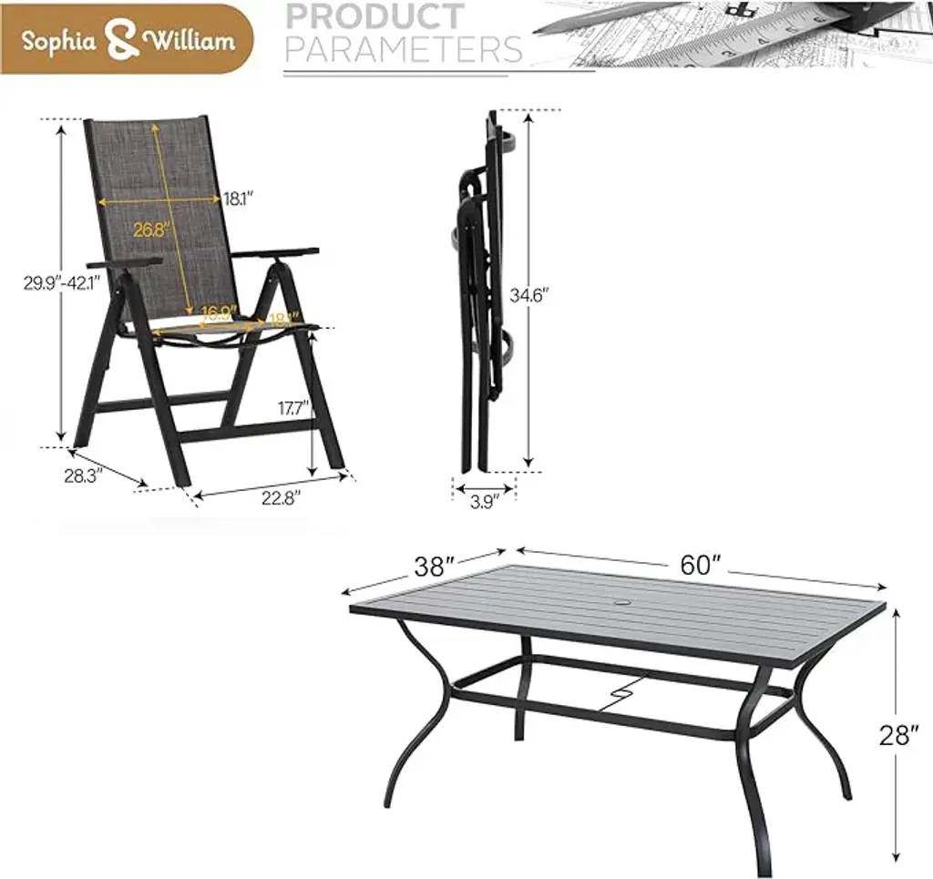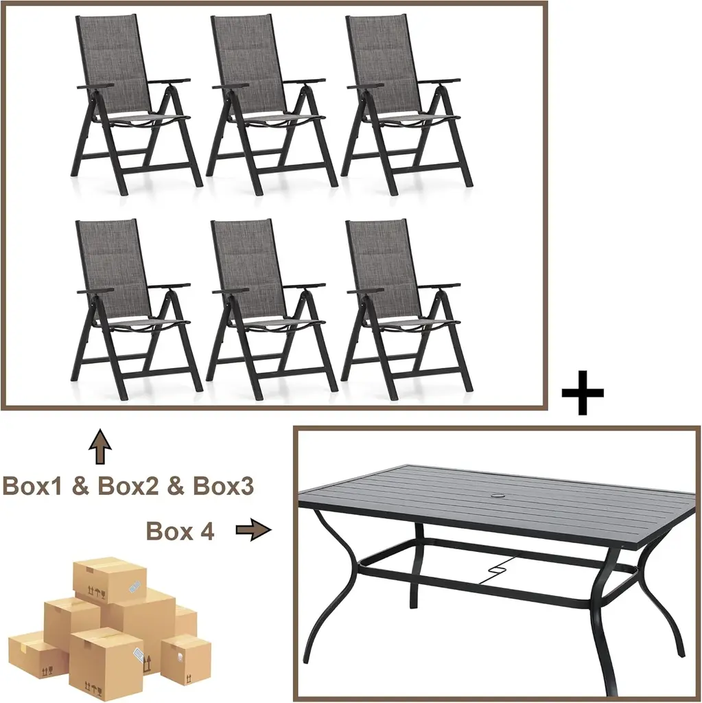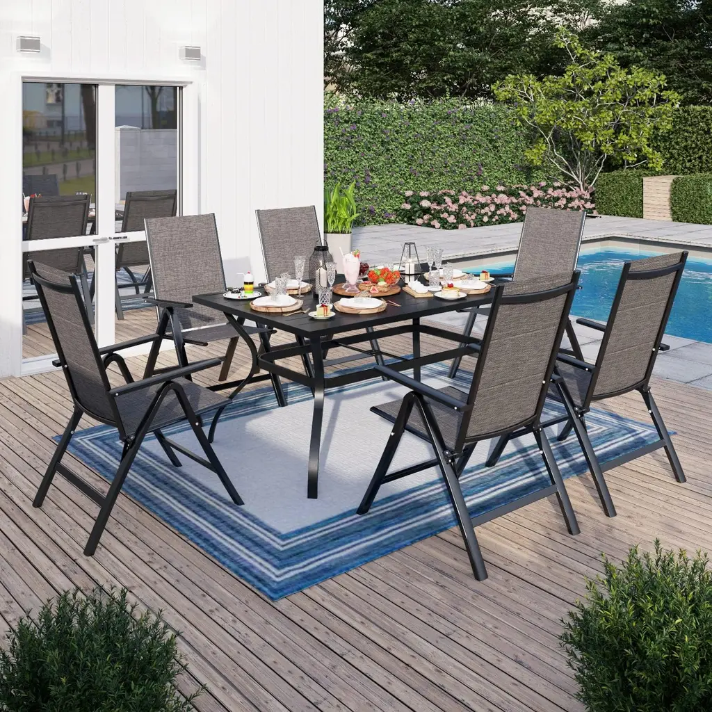 Sophia & William 7Pc Steel Panel Rectangle Table & 6 Textilene Reclining Foldable Chairs Patio Outdoor Dining Set