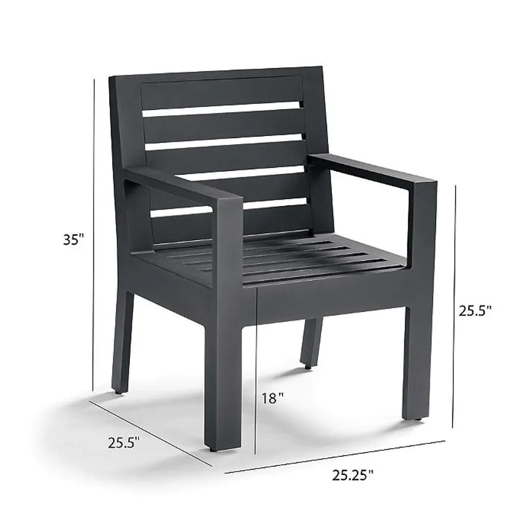 Renowned for its broad, sturdy arms, clean lines and comfortably deep seat, St. Kitts is the ultimate spot for hours of outdoor dining and entertaining. Generously proportioned frames are crafted from sand-casted, high-purity aluminum with a multilayered powdercoat finish that withstands the harshest weather conditions — all while looking great year after year. Optional cushions are upholstered in 100% solution-dyed acrylic fabric — the most colorfast and durable outdoor fabric on the market. Part of the St. Kitts Collection Sand-casted, high-purity aluminum frame is exceptionally strong, yet lightweight enough to move around your outdoor space with ease Durable frame is powdercoated to protect against the elements Hand-filed welds provide strength and durability Frame is backed by an industry-leading 10-year structural warranty Optional supportive seat cushions sized to provide a deep sit All-weather seat cushions have a high-resiliency foam core wrapped in plush polyester 100% solution-dyed fabric resists mold, mildew and fading – and is easy to clean Cushions also available with 100% waterproof Sunbrella® Rain performance fabric Arrives assembled Imported A Frontgate exclusive. At Frontgate, our primary focus is quality. We guarantee that every product we sell will stand up to the supreme test – our customers' satisfaction. To learn more about our policies, visit our Shipping & Processing, Returns & Exchanges and Warranty & Price Guarantee pages. Please note: Digital renderings of custom upholstery may differ in pattern placement from the actual item. Because colors can vary from screen to screen, we recommend ordering a swatch before completing your order. We offer free swatches of all our outdoor fabrics. 10-swatch maximum. Solid and stripe swatches measure 4"x4" and pattern swatches measure 8"x8". View and order swatches here. Renowned for its broad, sturdy arms, clean lines and comfortably deep seat, St. Kitts is the ultimate spot for hours of outdoor dining and entertaining. Generously proportioned frames are crafted from sand-casted, high-purity aluminum with a multilayered powdercoat finish that withstands the harshest weather conditions — all while looking great year after year. Optional cushions are upholstered in 100% solution-dyed acrylic fabric — the most colorfast and durable outdoor fabric on the market. Part of the St. Kitts Collection Sand-casted, high-purity aluminum frame is exceptionally strong, yet lightweight enough to move around your outdoor space with ease Durable frame is powdercoated to protect against the elements Hand-filed welds provide strength and durability Frame is backed by an industry-leading 10-year structural warranty Optional supportive seat cushions sized to provide a deep sit All-weather seat cushions have a high-resiliency foam core wrapped in plush polyester 100% solution-dyed fabric resists mold, mildew and fading – and is easy to clean Cushions also available with 100% waterproof Sunbrella® Rain performance fabric Arrives assembled Imported A Frontgate exclusive. At Frontgate, our primary focus is quality. We guarantee that every product we sell will stand up to the supreme test – our customers' satisfaction. To learn more about our policies, visit our Shipping & Processing, Returns & Exchanges and Warranty & Price Guarantee pages. Please note: Digital renderings of custom upholstery may differ in pattern placement from the actual item. Because colors can vary from screen to screen, we recommend ordering a swatch before completing your order. We offer free swatches of all our outdoor fabrics. 10-swatch maximum. Solid and stripe swatches measure 4"x4" and pattern swatches measure 8"x8". View and order swatches here.