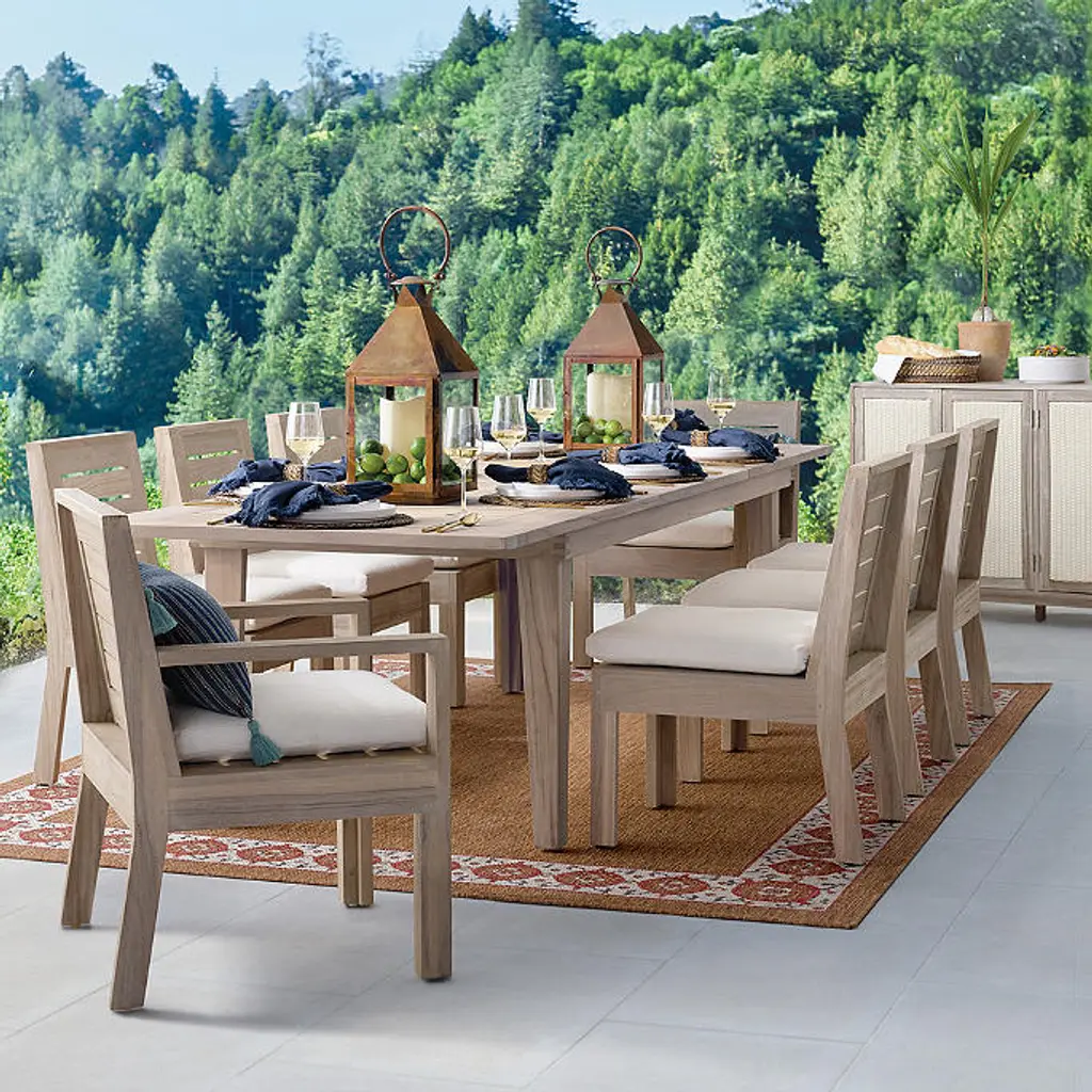 Renowned for its broad, sturdy arms, clean lines and comfortably deep seat, St. Kitts is the ultimate spot for hours of outdoor dining and entertaining. Generously proportioned frames are crafted from wide planks of solid premium teak accented with a hand-scraped, hand-applied weathered finish. Optional cushions are upholstered in 100% solution-dyed acrylic fabric — the most colorfast and durable outdoor fabric on the market. Part of the St. Kitts Collection Hand-built from sustainably harvested premium teak that is naturally resistant to mildew, so it holds up to rain and humidity Durable teak frame is kiln-dried to remove moisture, guarding against warping and cracking, and sanded by hand so it's smooth to the touch Hand-scraped, hand-applied weathered finish adds visual appeal Frame is backed by an industry-leading 10-year structural warranty Optional supportive seat cushions sized to provide a deep sit All-weather cushions have a high-resiliency foam core wrapped in plush polyester for exceptional comfort 100% solution-dyed fabric resists mold, mildew and fading – and is easy to clean Cushions also available with 100% waterproof Sunbrella® Rain performance fabric Imported A Frontgate exclusive. Please note: Digital renderings of custom upholstery may differ in pattern placement from the actual item. Because colors can vary from screen to screen, we recommend ordering a swatch before completing your order. We offer free swatches of all our outdoor fabrics. 10-swatch maximum. Solid and stripe swatches measure 4"x4" and pattern swatches measure 8"x8". View and order swatches here. At Frontgate, our primary focus is quality. We guarantee that every product we sell will stand up to the supreme test – our customers' satisfaction. To learn more about our policies, visit our Shipping & Processing, Returns & Exchanges and Warranty & Price Guarantee pages. Renowned for its broad, sturdy arms, clean lines and comfortably deep seat, St. Kitts is the ultimate spot for hours of outdoor dining and entertaining. Generously proportioned frames are crafted from wide planks of solid premium teak accented with a hand-scraped, hand-applied weathered finish. Optional cushions are upholstered in 100% solution-dyed acrylic fabric — the most colorfast and durable outdoor fabric on the market. Part of the St. Kitts Collection Hand-built from sustainably harvested premium teak that is naturally resistant to mildew, so it holds up to rain and humidity Durable teak frame is kiln-dried to remove moisture, guarding against warping and cracking, and sanded by hand so it's smooth to the touch Hand-scraped, hand-applied weathered finish adds visual appeal Frame is backed by an industry-leading 10-year structural warranty Optional supportive seat cushions sized to provide a deep sit All-weather cushions have a high-resiliency foam core wrapped in plush polyester for exceptional comfort 100% solution-dyed fabric resists mold, mildew and fading – and is easy to clean Cushions also available with 100% waterproof Sunbrella® Rain performance fabric Imported A Frontgate exclusive. Please note: Digital renderings of custom upholstery may differ in pattern placement from the actual item. Because colors can vary from screen to screen, we recommend ordering a swatch before completing your order. We offer free swatches of all our outdoor fabrics. 10-swatch maximum. Solid and stripe swatches measure 4"x4" and pattern swatches measure 8"x8". View and order swatches here. At Frontgate, our primary focus is quality. We guarantee that every product we sell will stand up to the supreme test – our customers' satisfaction. To learn more about our policies, visit our Shipping & Processing, Returns & Exchanges and Warranty & Price Guarantee pages.