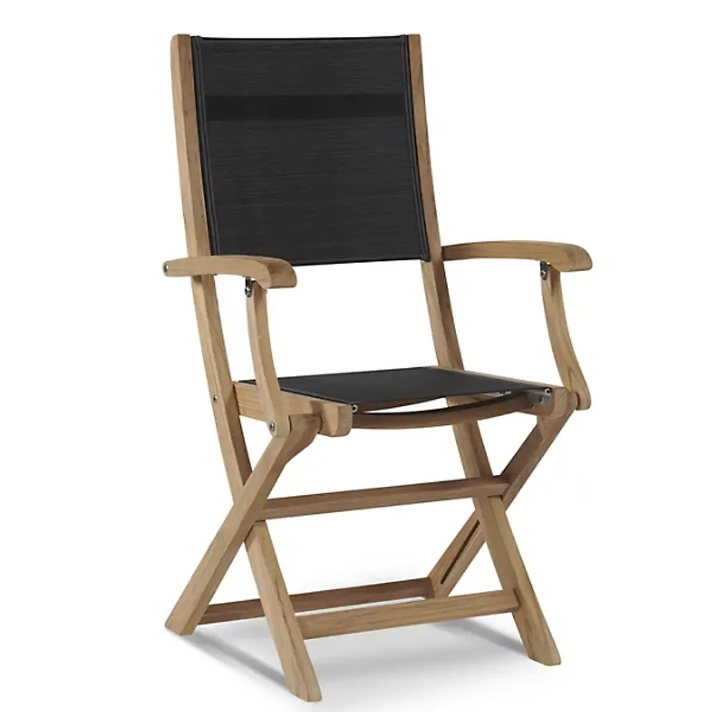 The Stella 3-Piece Outdoor Dining Set with Armchairs from HiTeak Furniture addresses the specific needs of narrow balconies and garden corners where larger dining sets would overwhelm the available space. One Valencia Folding Table pairs with two Stella Armchairs to create an intimate dining experience for breakfast or casual meals outdoors. The table includes an umbrella hole for shade during hot summer days, while both table and chairs fold for convenient storage when not needed. Durable sling construction on the chair seats and backs provides contemporary styling that complements the practical folding design.