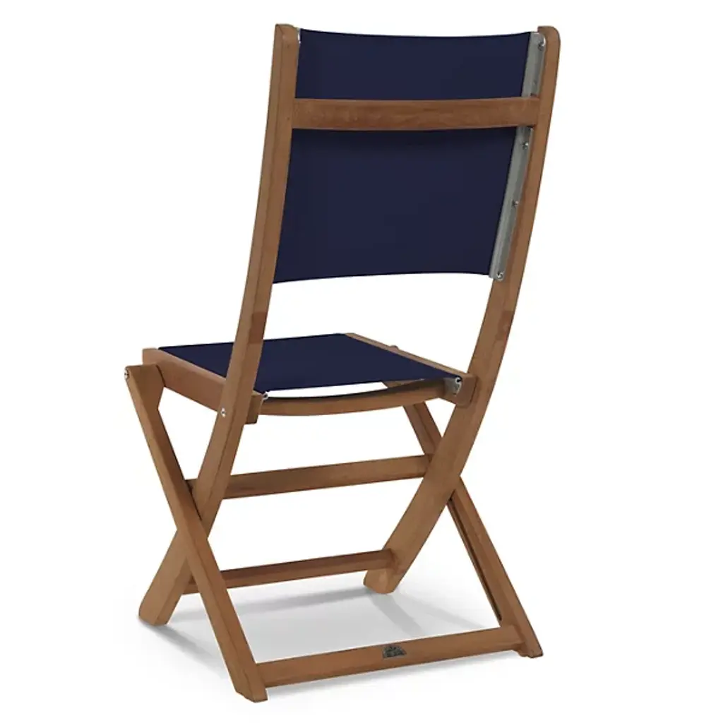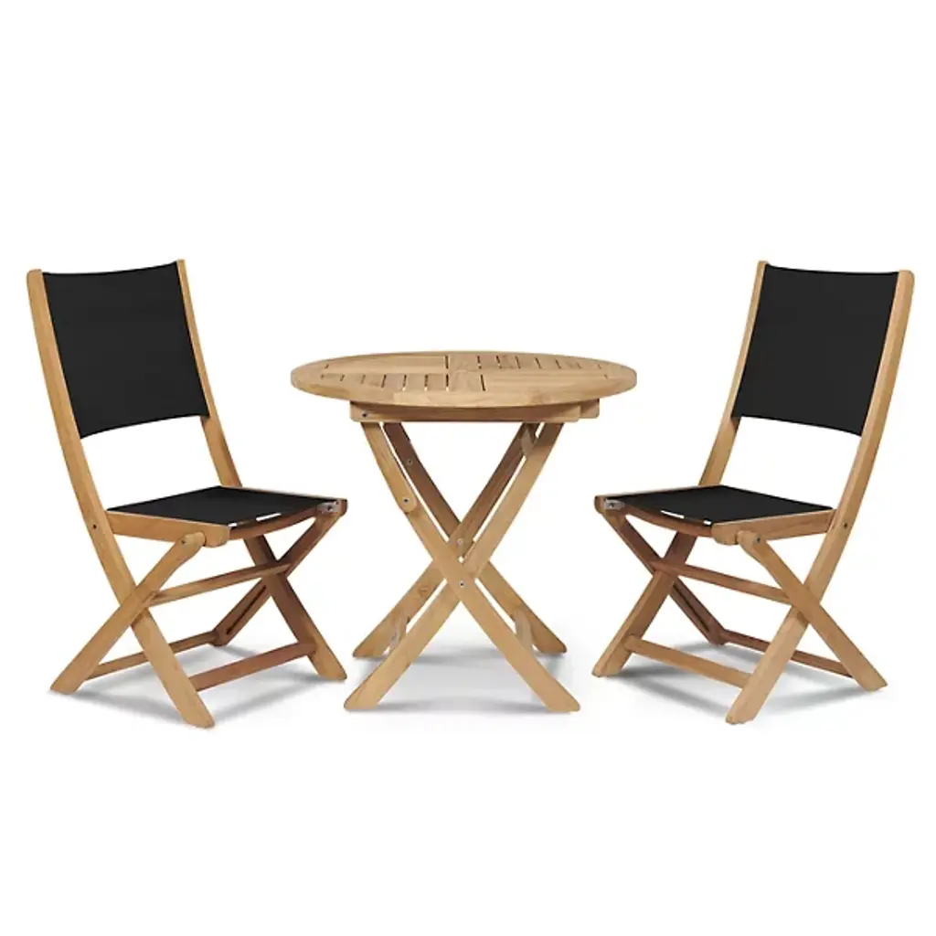 The Stella 3-Piece Outdoor Dining Set with Sidechairs from HiTeak Furniture creates an intimate dining experience designed specifically for narrow balconies and garden corners. One Valencia Folding Table pairs with two Stella Side Chairs to establish a cozy breakfast spot that maximizes functionality within minimal square footage. The table incorporates an umbrella hole that provides shade options during the intense summer heat, while durable sling construction on both seat and back surfaces delivers contemporary styling alongside lasting comfort. All pieces fold completely flat for storage, making this set ideal for seasonal use or spaces that serve multiple purposes.