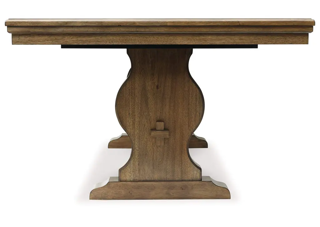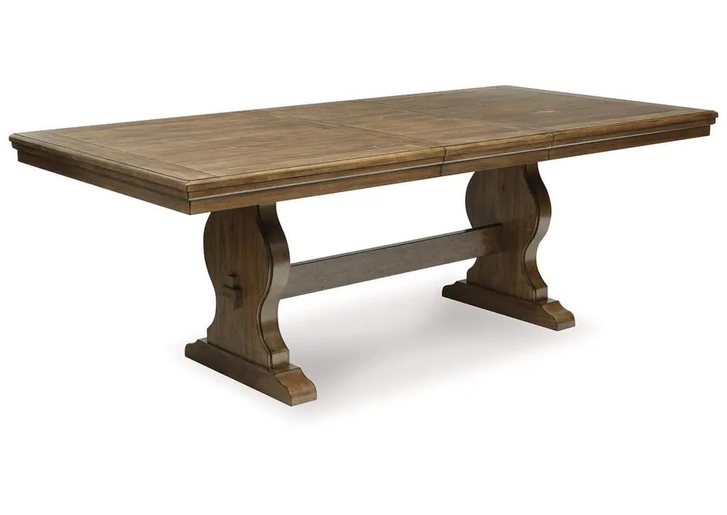Traditional style doesn’t have to be stuffy. It can feel warm, inviting and beautifully in the moment. Case in point: the Sturlayne dining set. Merging the versatility of an extension table with the comfort of sumptuously upholstered chairs, it has an allure all its own. Equally special is the rich brown finish, which exudes a mood of timeless charm. How's that for relaxed refinement?