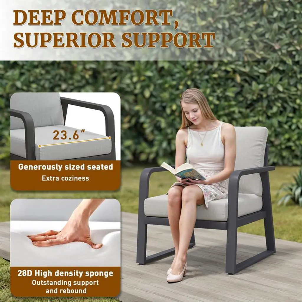 Sugold Patio Aluminum Chairs Set Of 4, Outdoor Stackable Dining Chairs With Armrest And Cushions Dark Gray