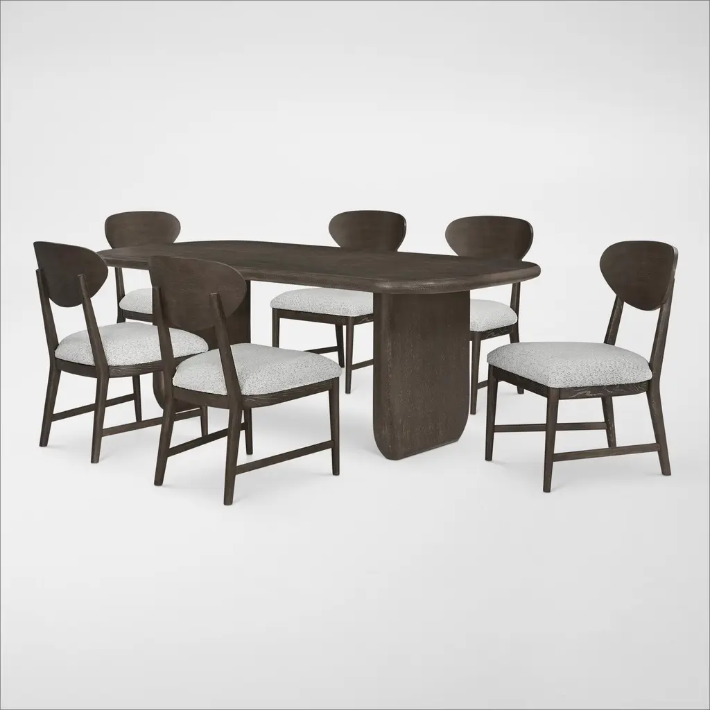 Designed with a sculptural appeal, the Tahoe Rectangular Dining Table and 4 Wood Back Side Chairs feature soft curves, thick legs and cozy upholstery for a look you'll love year after year.