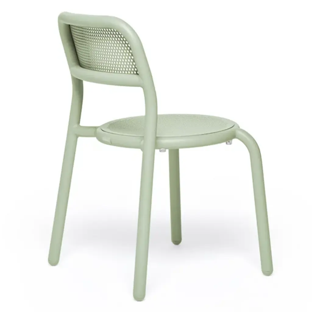 The Toni Bistreau Outdoor Dining Table Set with Sidechairs from Fatboy adds charm and comfort to any location. Designed by Erik Stehmann, this airy contemporary set features a round bistro table with a versatile umbrella and candle holder at its center, great for romantic dinners or cozy gatherings. Made from lightweight, UV-resistant, all-weather aluminum, it includes stackable chairs enhanced by patterned seats and backs, offering casual comfort and easy rearrangement. Suitable for indoor and outdoor use, the set is inspired and practical, able to provide lasting comfort for years to come.