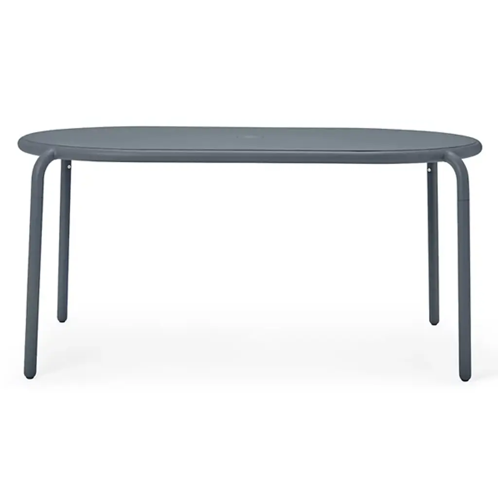 The Toni Tavolo Outdoor Dining Table Set with 4 Armchairs from Fatboy offers an inspired accompaniment to any patio or outdoor space. Designed by Erik Stehmann, this contemporary set features a striking design using durable materials, with outflung legs elevating a central table. The spacious table, crafted from lightweight, UV-resistant, all-weather aluminum, is paired with stackable armchairs with swooping arms and pierced backs to prevent water pooling. The versatile umbrella holder doubles as a candle holder, offering protection from rain, sun, darkness, or mosquitos. This set combines functionality with stylish appeal and is ideal for indoor and outdoor use.