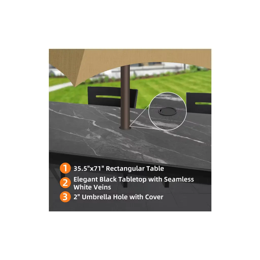 Unisoar Modern 7-piece Outdoor Patio Aluminum Dining Set, 35.5"x71" Rectangular Dining Table With Black Marble-look Sintered Stone Top