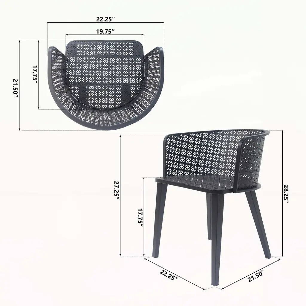 This outdoor dining chair set is a wonderful choice for those seeking to transform their outdoor or indoor areas. It offers both aesthetic appeal and practicality. The chairs are designed to adapt to your changing needs, allowing you to create a comfortable and inviting atmosphere wherever you place them. Their durability ensures they withstand various weather conditions, while their style effortlessly blends with different decor styles. Whether for family gatherings or quiet moments alone, these chairs provide a reliable and charming seating option.The chairs are crafted with high-quality materials, ensuring long-lasting performance and resistance to wear and tear.They are easy to move around, allowing you to reconfigure your space as needed for different occasions and activities.The design of the chairs adds a touch of elegance to your outdoor or indoor setting, enhancing the overall look and feel.The chairs provide a comfortable seating experience, allowing you to relax and enjoy your time without discomfort.They are suitable for a wide range of living spaces, from small balconies to large gardens, making them a versatile choice.