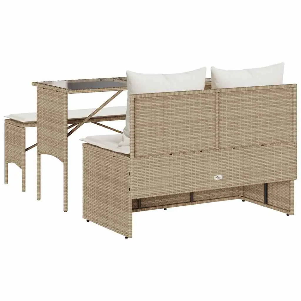 Vidaxl 3 Piece Patio Dining Set With Cushions Beige Poly Rattan