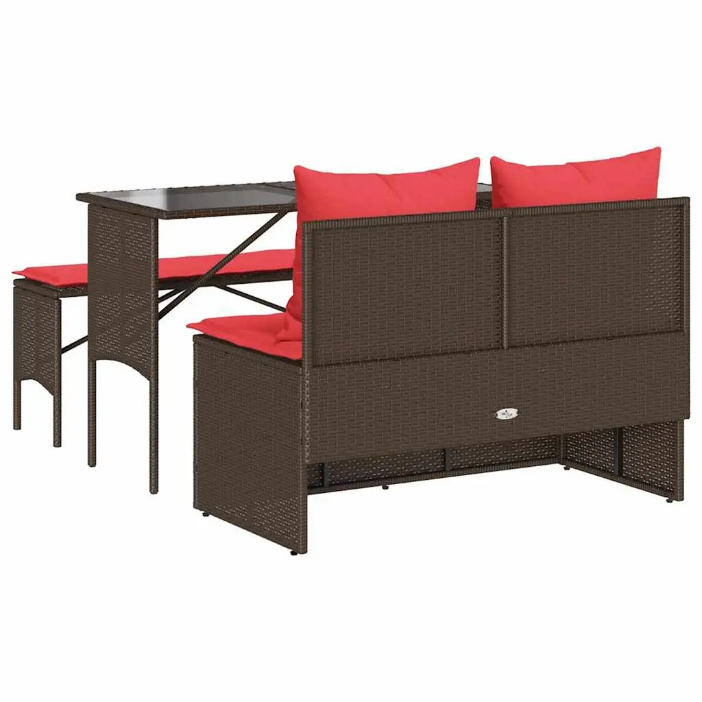Vidaxl 3 Piece Patio Dining Set With Cushions Brown Poly Rattan
