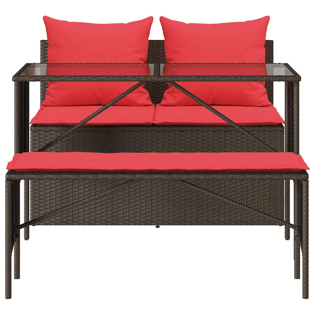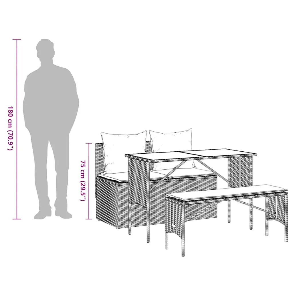 This garden dining set is a great choice for al fresco dining or just relaxing in the garden, backyard, or patio.Durable material: PE rattan, also known as poly rattan, is a strong, low-maintenance synthetic material that looks like natural rattan. It's lightweight, easy to clean, and commonly used for outdoor furniture due to its durability and weather-proof properties.Glass tabletop: The outdoor table's top is made from strong and durable tempered glass, making it easy to clean with a damp cloth and adding a touch of elegance to your outdoor space.Comfortable seat experience: This outdoor furniture, complete with thickly padded cushions, offers a comfortable seating experience.Removable and washable cover: These seat cushions feature removable covers for easy washing and maintenance.Robust and stable frame: The powder-coated steel frame ensures that the garden furniture is strong and stable for daily outdoor use.Good to know:To make sure your outdoor furniture stays beautiful, we recommend protecting it with a waterproof cover.
