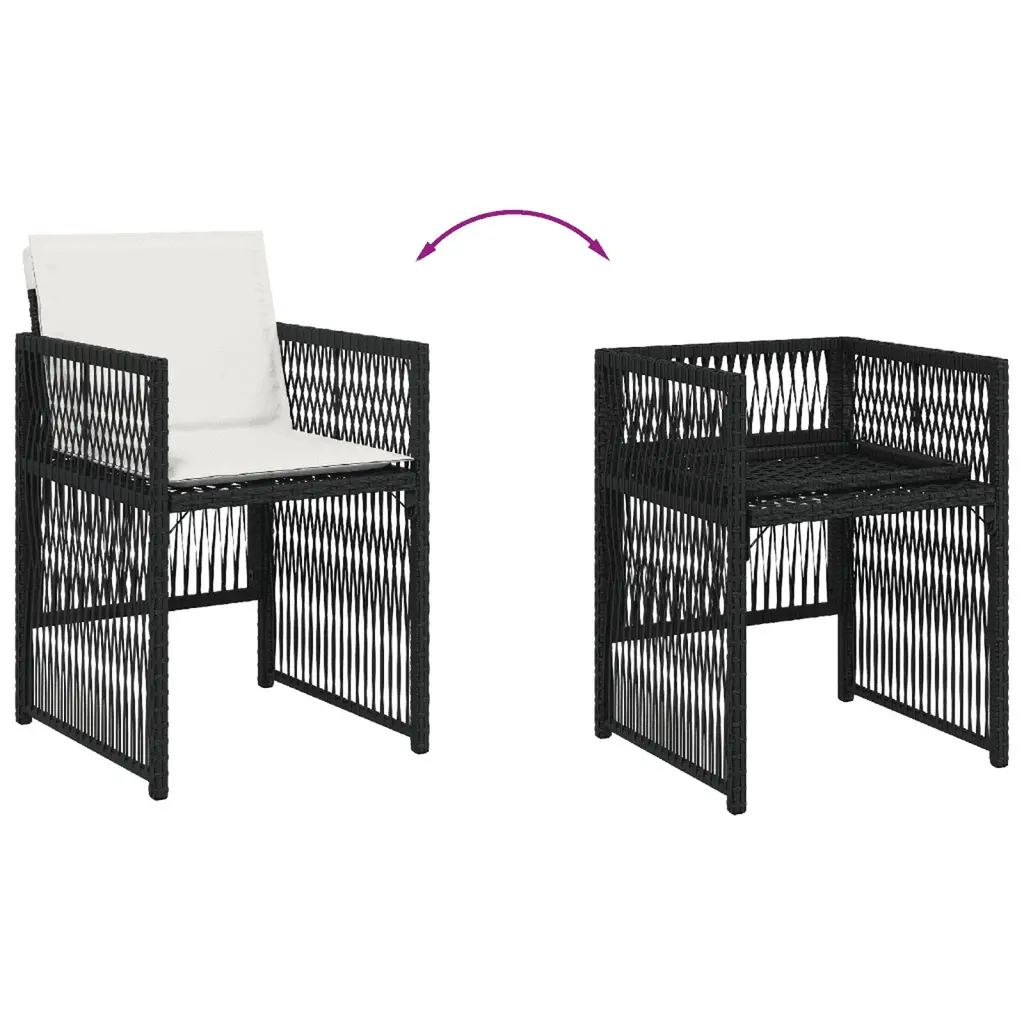 This garden dining set is a great choice for al fresco dining or just relaxing in the garden, backyard, or on the patio. Durable material: PE rattan, also known as poly rattan, is a strong, low-maintenance synthetic material that looks like natural rattan. It's lightweight, easy to clean, and commonly used for outdoor furniture due to its durability and weather-proof properties.Compact storage: These chairs have a flap backrest that can be folded down, making it easy to store them under the table. When folded, they neatly fit under the table, forming a space-saving cube shape.Comfortable seat experience: This outdoor furniture, complete with thickly padded cushions, offers a comfortable seating experience.Removable and washable cover: These cushions feature removable covers for easy washing and maintenance. The cushion covers have a flap at the back for easy attachment to the backrests.Glass tabletop: The outdoor table's top is made from strong and durable tempered glass, making it easy to clean with a damp cloth and adding a touch of elegance to your outdoor space.Good to know: To make sure your outdoor furniture stays beautiful, we recommend protecting it with a waterproof cover.