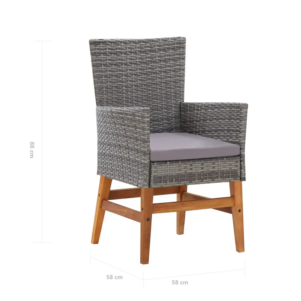 Vidaxl 7 Piece Patio Dining Set Poly Rattan And Acacia Wood Gray