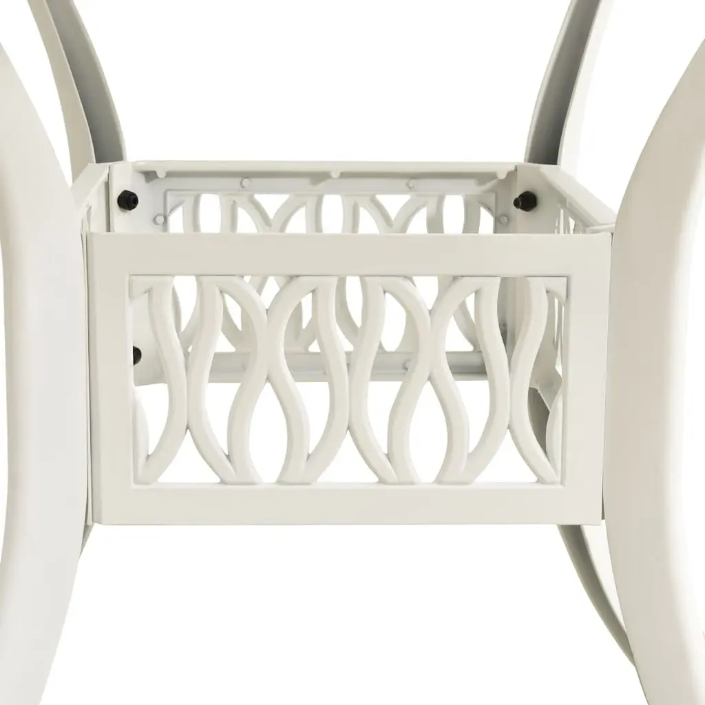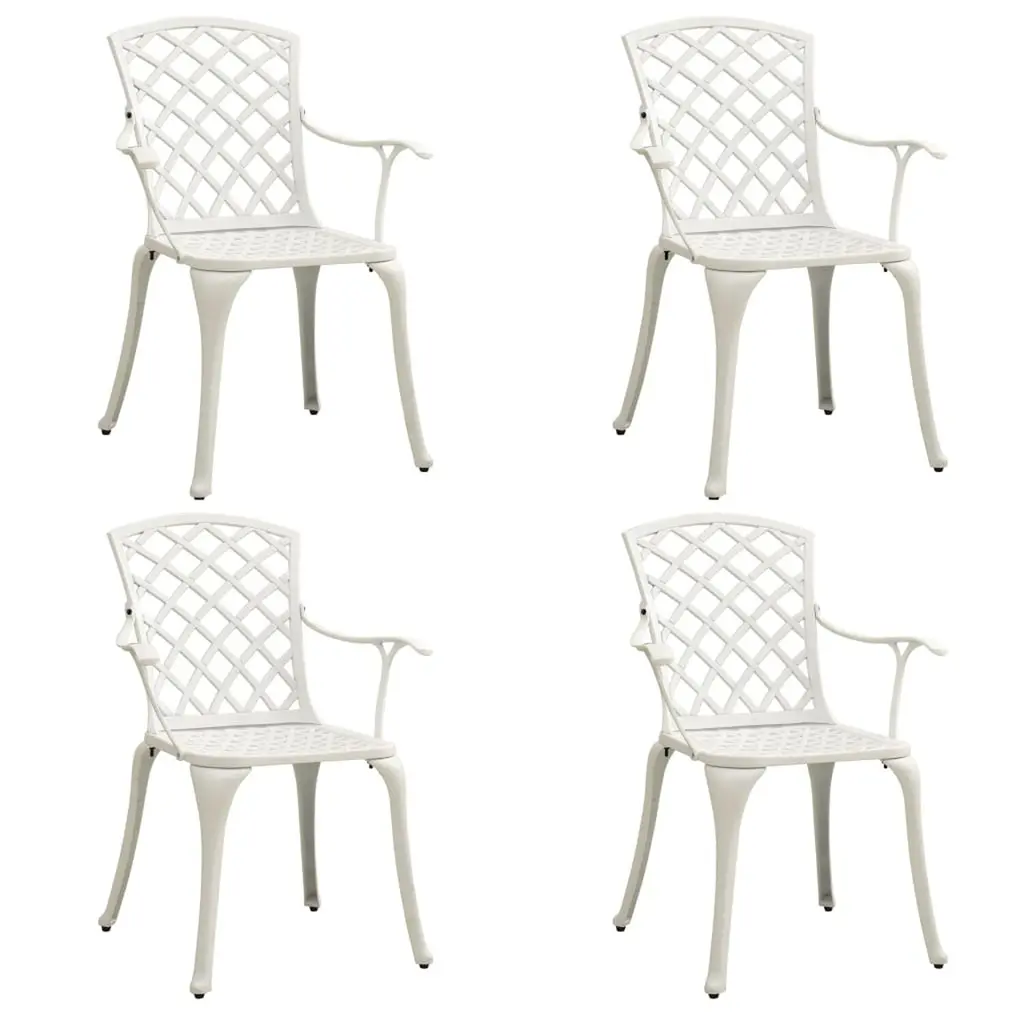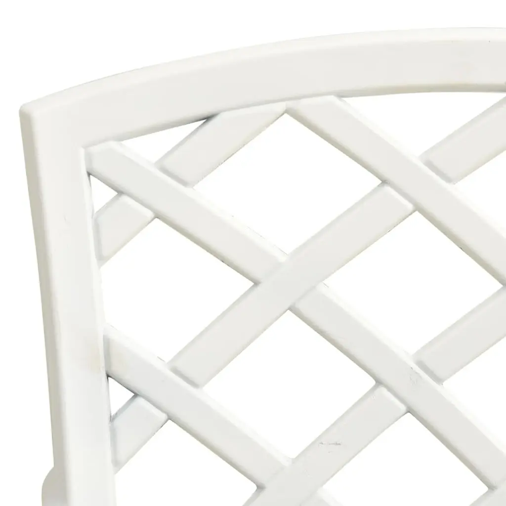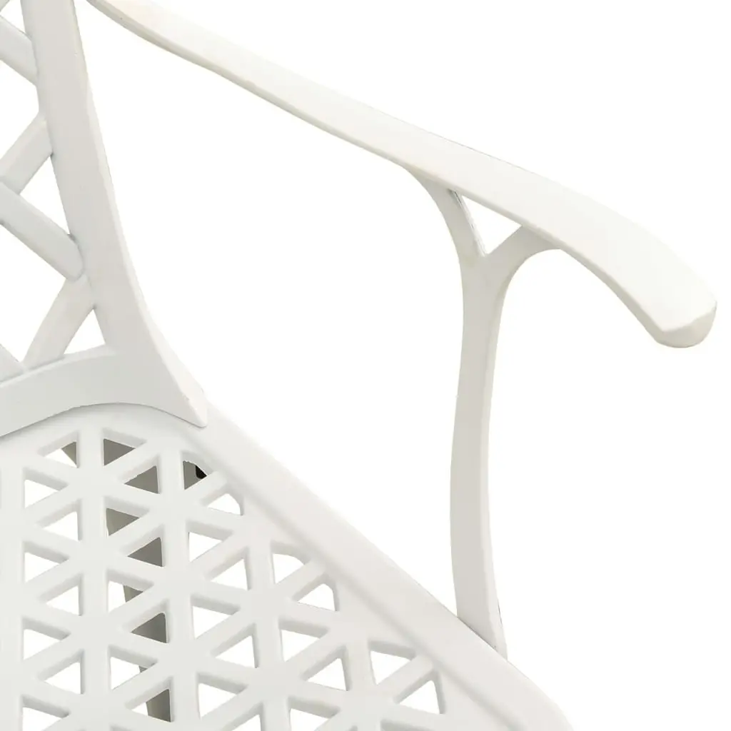 This 5 Piece White Bistro Set from vidaXL transforms your dining vibes with its classic round design. The sleek finish and attractive geometric pattern blend style and function, making it perfect for balconies, quaint cafes, or dinner parties. Whether you're having a chill Sunday brunch or hosting a get-together under the stars, this bistro set has got you covered. Stylish Design: The bistro set has a stunning geometric pattern that boosts its visual appeal, creating a welcoming vibe for your dining area. The elegant white finish fits various decor styles, making it a handy choice for homes or patios.Strong Build: Made from sturdy cast-aluminum, this set is built to brave the weather while keeping its good looks. The durable material ensures it lasts long, giving you a tough solution for your furnishing needs.For Any Setting: Great for indoors and outdoors, this bistro set can turn any place into a lovely oasis or provide a stylish dining option inside. Use it for casual meals, reading, or just enjoying a glass of wine with friends.Comfy Seating: With space for up to 5, this set makes sure all your friends are comfortably seated. The roomy chairs invite chill time and conversation.Easy to Clean: The smooth surface makes cleaning a breeze, keeping your dining area looking sharp. Just wipe it down with a light detergent, and it’s as good as new.