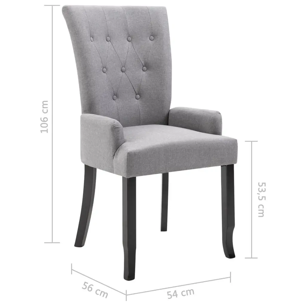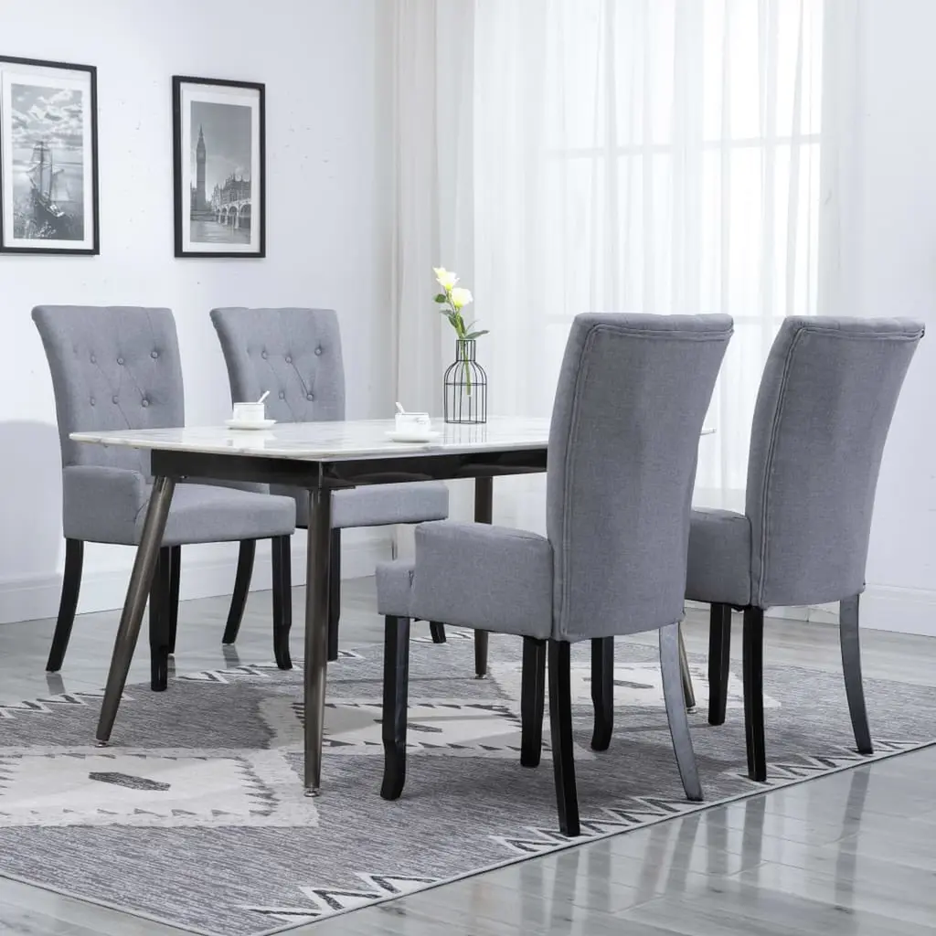 This chair set is all about mixing style and comfort, made for anyone who wants to enjoy every meal in a nice and classy atmosphere. The light grey fabric goes well with any decor, whether you're having a family dinner or entertaining friends for a fancy get-together, making sure that every moment spent sitting is relaxing and elegant. Ergonomic Shape: The chairs are made to support your back and arms, keeping you comfy during long meals. Enjoy snacks or relaxed dinners with ease. Strong Build: Made from solid oak and soft fabric, these chairs are designed to last, so you’re getting quality furniture that stands the test of time. Their well-crafted details show off durability while keeping a classy look. Trendy Fabric: The light grey material adds a modern touch and is stain-resistant too, so it's easy to keep clean, perfect for everyday use. Get style without sacrificing practicality. Set of Four Chairs: Each purchase gives you four chairs, providing plenty of seating for gatherings, family meals, or daily use. Everyone can sit comfortably around the table with this stylish set. All-Round Use: These chairs fit anywhere, be it dining rooms, kitchens or as stylish pieces in any room. Effortlessly uplift your home’s decor with their chic look.