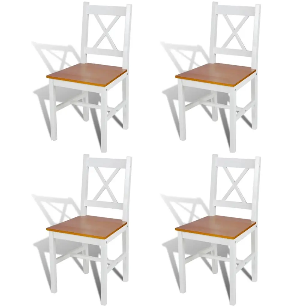 Vidaxl Dining Chair Set Of 4 White And Natural Wood Solid Rubber Wood
