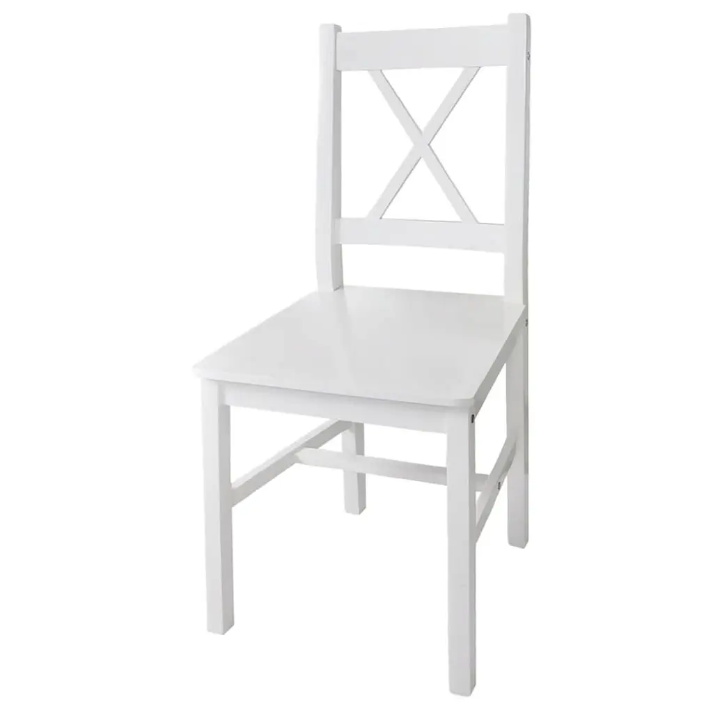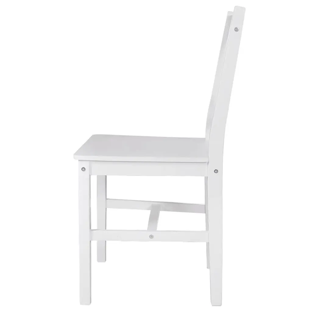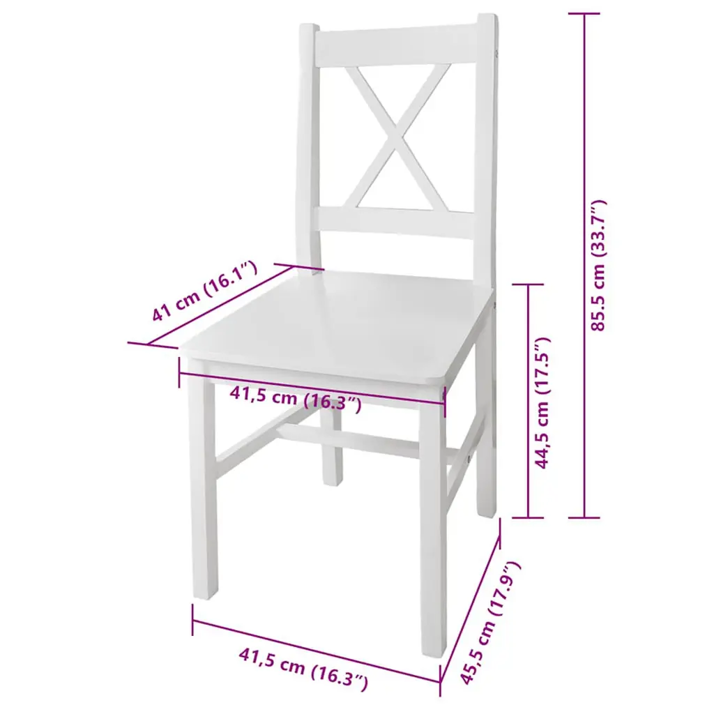 This dining chair set has got the elegance and functionality combo down, showcasing four striking white pieces made from solid pine wood. Their smooth feel and minimalist style fit nicely into various table settings, elevating the dining experience while keeping comfort in mind for family get-togethers or quiet meals. Ergonomic Design: Each chair’s shaped to support your posture, making it fab for long dinner chats, game nights, or family hangs. You’ll enjoy comfort and style.Durable Construction: Made from solid pine wood, these chairs can handle daily use while keeping their good looks. The sturdy finish stands up to wear and tear.Elegant Aesthetic: The pristine white finish showcases the natural beauty of the pine wood, turning these chairs into stylish pieces for your dining room or kitchen, creating a welcoming vibe.Versatile Use: Perfect for dining rooms, kitchens, or as accent pieces in various indoor spaces. These chairs fit in beautifully, letting you style your space however you like.Simple Maintenance: Cleaning’s a breeze; a quick wipe with a damp cloth keeps the lovely white finish looking fresh. They’re built for easy repairs and upkeep over time.