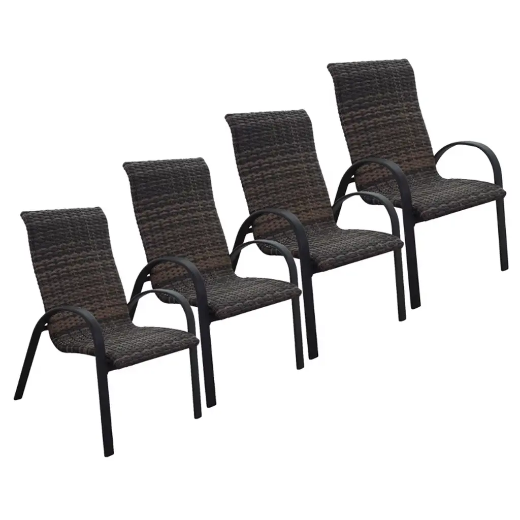 This stackable outdoor dining chair set is perfect for your garden or patio. Made from strong poly rattan and powder-coated steel, they come in a sleek black finish. These chairs not only offer comfort but also elevate the look of your outdoor area, making them ideal for gatherings or relaxed meals. The chairs are made from durable poly rattan, ensuring they'll withstand the elements and remain looking great. They stack easily for quick storage, making them perfect for spaces with limited room when not in use. Weather-resistant materials give you peace of mind, keeping these chairs reliable and looking fab in all types of weather. They’re perfect for dining, whether it’s a casual lunch or an evening dinner with friends. The modern design fits seamlessly into any stylish outdoor space, enhancing both beauty and function.