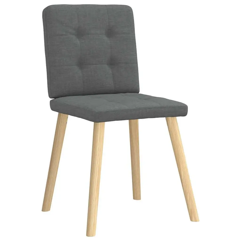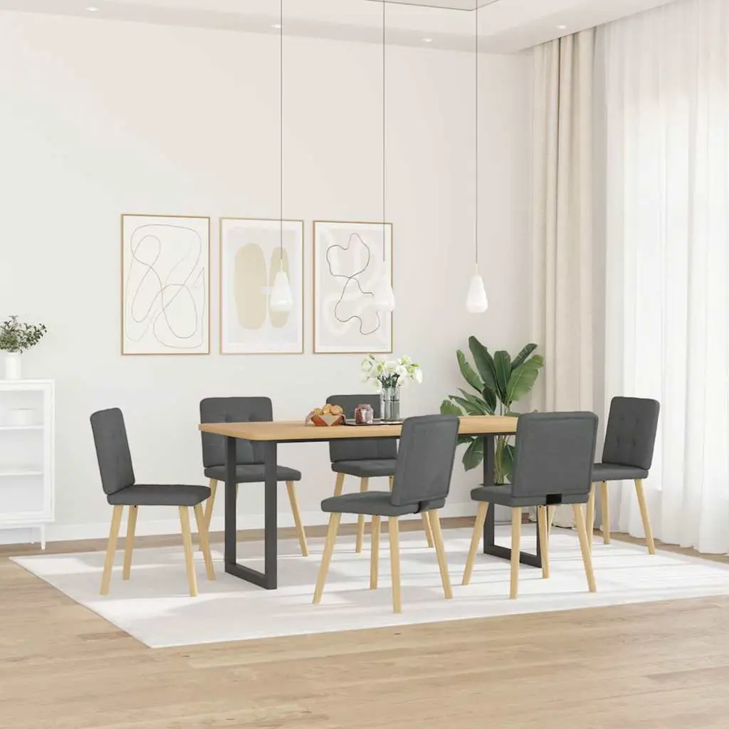 This dining chair set is all about style and comfort, making it a top-notch addition to your dining room or living space. Upholstered in dark gray fabric, each chair gives off a contemporary vibe that's perfect for family dinners or entertaining. The sleek design adds a modern touch while keeping things practical for daily use, letting you relax comfortably with friends and family at the table. Stylish Design: The modern dark gray fabric adds a touch of sophistication to your dining area, matching contemporary or minimalist decor beautifully.Comfortable Seating: With a cushy bench design and soft foam filling, these chairs make long meals a joy. Enjoy good times with family and pals without feeling uncomfortable.Sturdy Construction: Built with a strong metal frame and solid rubber wood legs, these dining chairs are all about stability and durability. No worries about wobbling; these bad boys can hold up to 242.5 lb on solid bases.Easy to Maintain: Keeping these chairs clean is a breeze! Just wipe up spills with a damp cloth to keep the fabric looking good. The matte finish keeps the natural beauty of the fabric and wood on show.Versatile Use: Perfect for the dining room, kitchen, or even easy seating in the living room. This set of six chairs fits just right around a rectangular dining table, perfect for family dinners or relaxed get-togethers.