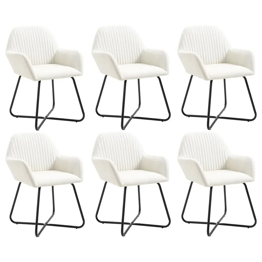 This set of six dining chairs mixes style with comfort, making them a great choice for any dining area or living spot, perfect for family meals and get-togethers. Ergonomic Design: These chairs are made for maximum comfort, so you can enjoy long meals without any hassle. The back's slight curve supports your spine and keeps you sitting right during those long dinners. Soft Velvet Fabric: Covered in soft velvet, these chairs look great and feel even better. The fabric creates a snug atmosphere, making for a lovely dining experience and is a breeze to clean. Stylish Modern Look: With their sleek design, these chairs fit in with many decor styles, from trendy to classic. They add a touch of class wherever they go, whether around a dining table or in a guest room. Sturdy Construction: Made from sturdy plywood and metal, these chairs hold up to 535.5 lbs, making them suitable for everyone. The robust legs provide stability while being easily movable. Versatile Use: Great for dining rooms, but these chairs also fit nicely in living rooms or guest spaces. They’re comfy for meals, casual hangouts, or as accent chairs, boosting your home’s functionality.